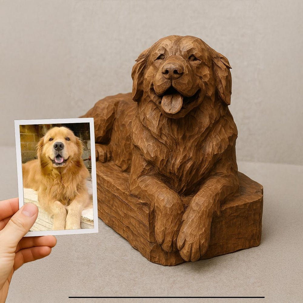 Dog Memorial Gift – Custom Wooden Pet Portrait Sculpture | Painting from Photo | Remembrance Gift for Pet Loss