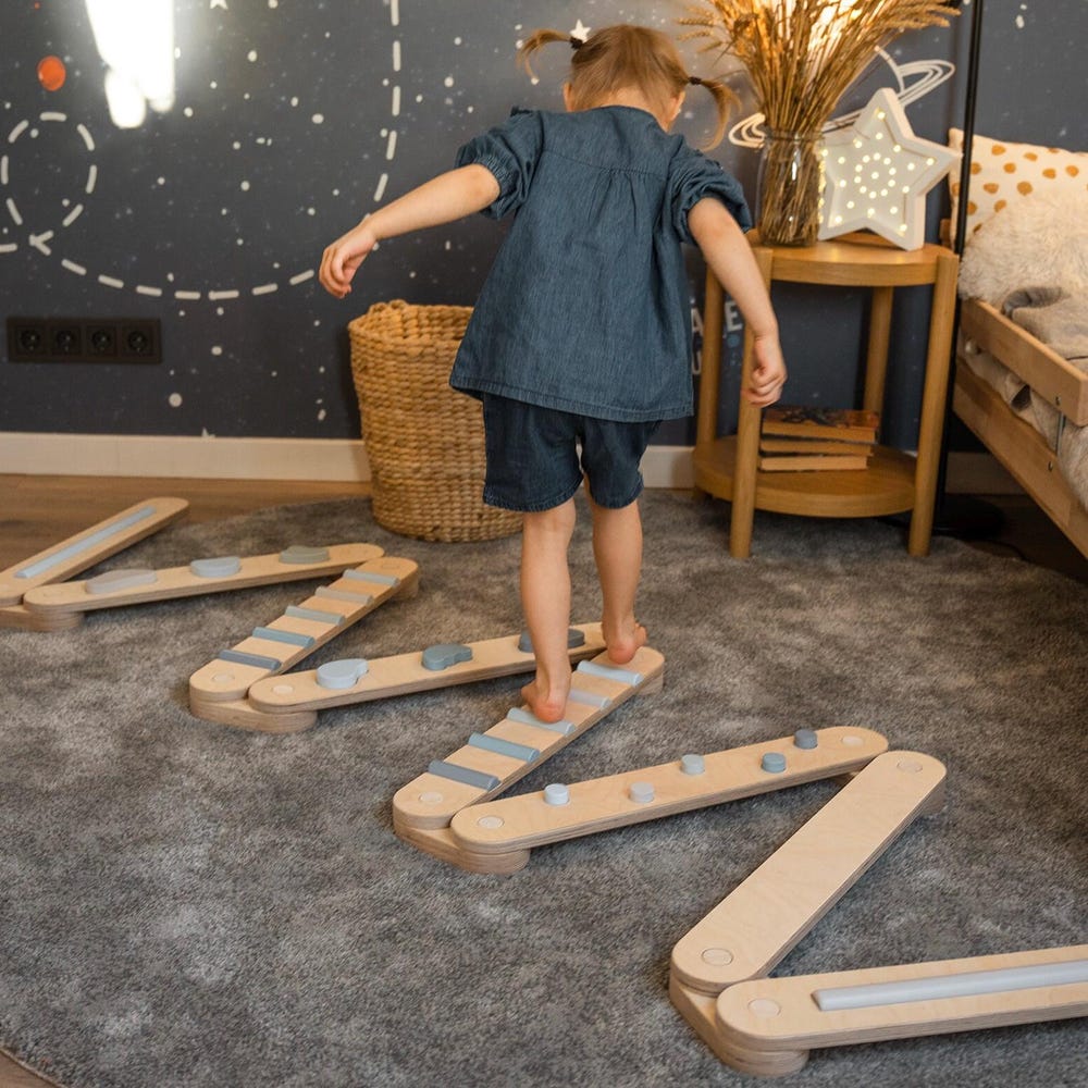 Balance beam set from 4, 6 or 8 beams, Montessori toy, gift for kids, wooden balance path, balance toy for kid, balance board, toddler gym