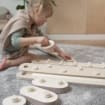 Double-sided wooden balance beam allow children to independently set up a balancing playground, play, and understand their body’s capabilities and physical boundaries. Children can play independently – by themselves.