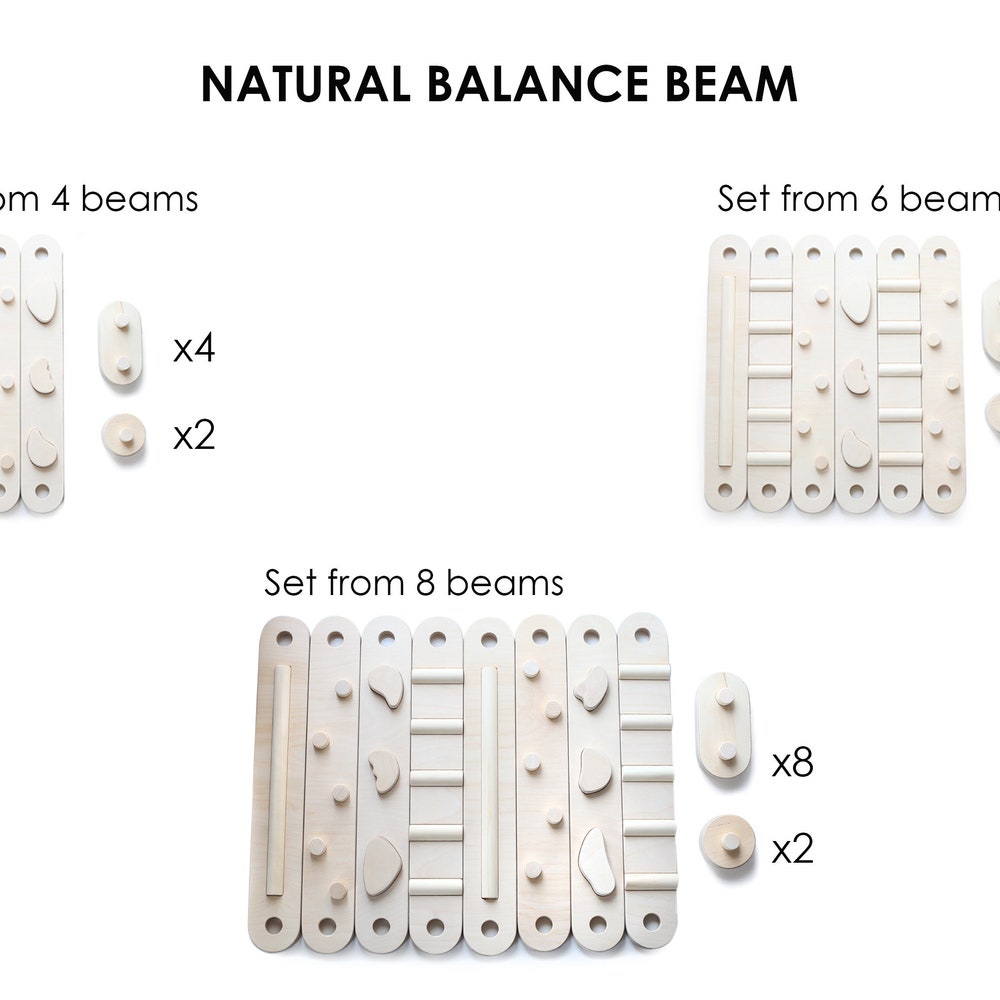 Double-sided natural balance beam set from 4, 6 or 8 beams, Montessori wooden balance toy, kids balance board, toddler gift, indoor gym