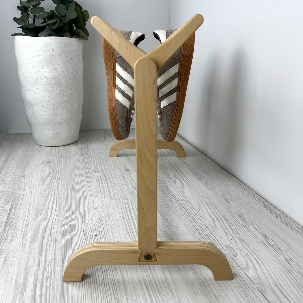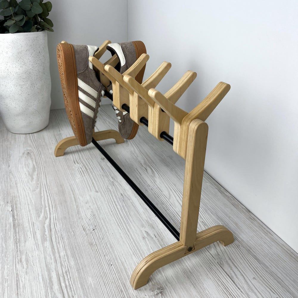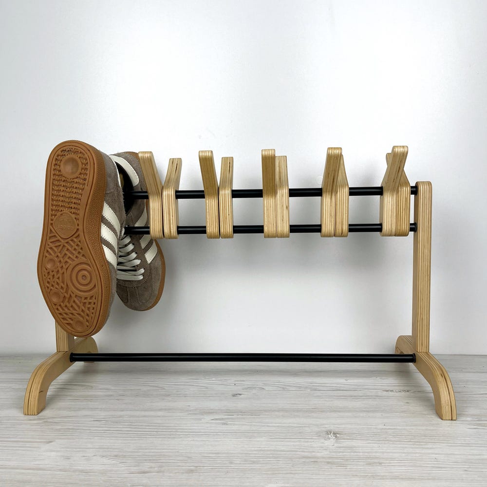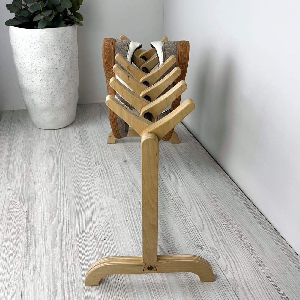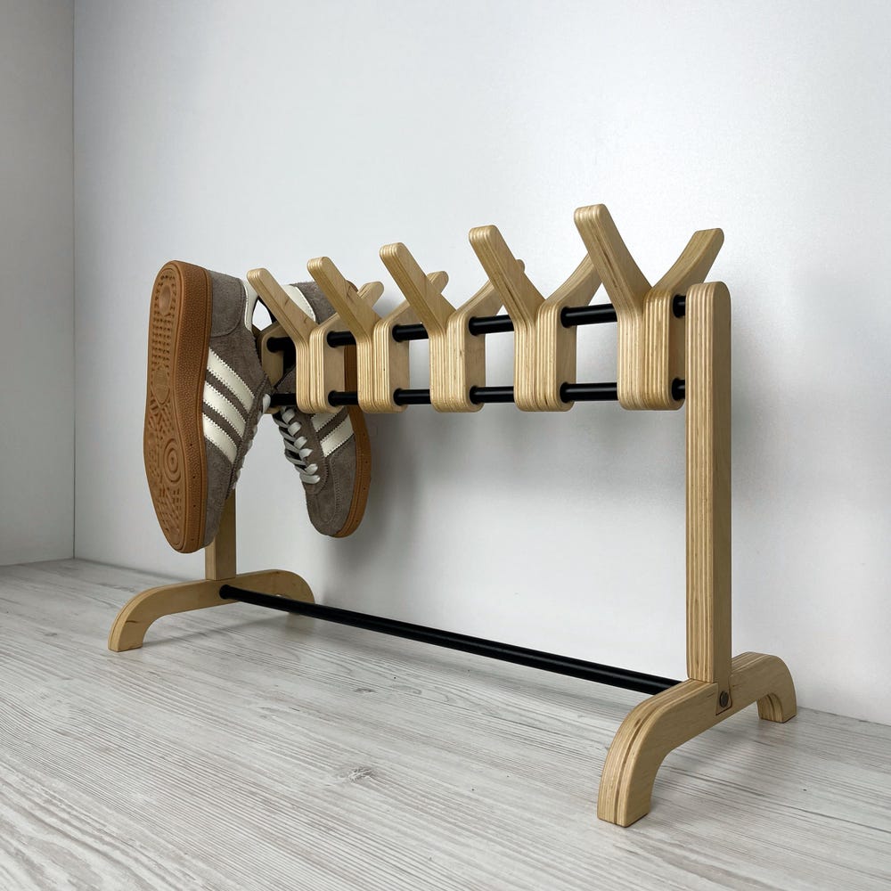 This unique wooden shoe rack is designed to hold up to 6 pairs of shoes, adding a touch of modern Scandinavian minimalism to your entryway, bedroom, or closet. Made from durable, eco-friendly birch plywood, the sleek design maximizes space while maintaining a stylish aesthetic.