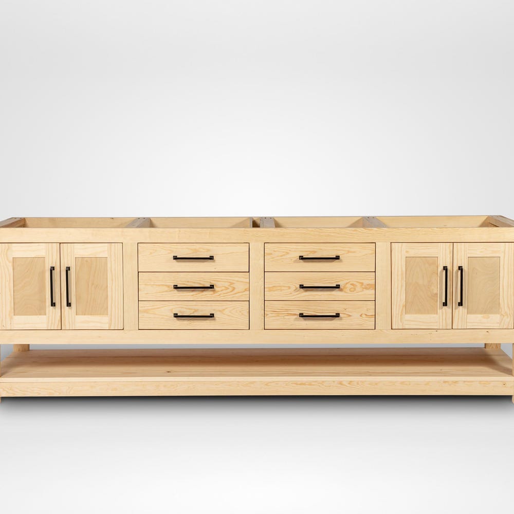 This listing is for a double sink bathroom vanity base only, featuring six middle drawers. The solid wood countertop is not included. PRODUCT SKU: LM05 DESCRIPTIONEnhance your bathroom space with the exceptional craftsmanship of our handmade solid American pine wood bathroom vanity. Meticulously created, each piece is thoughtfully sanded, stained, and sealed to perfection, ensuring […]