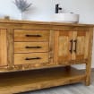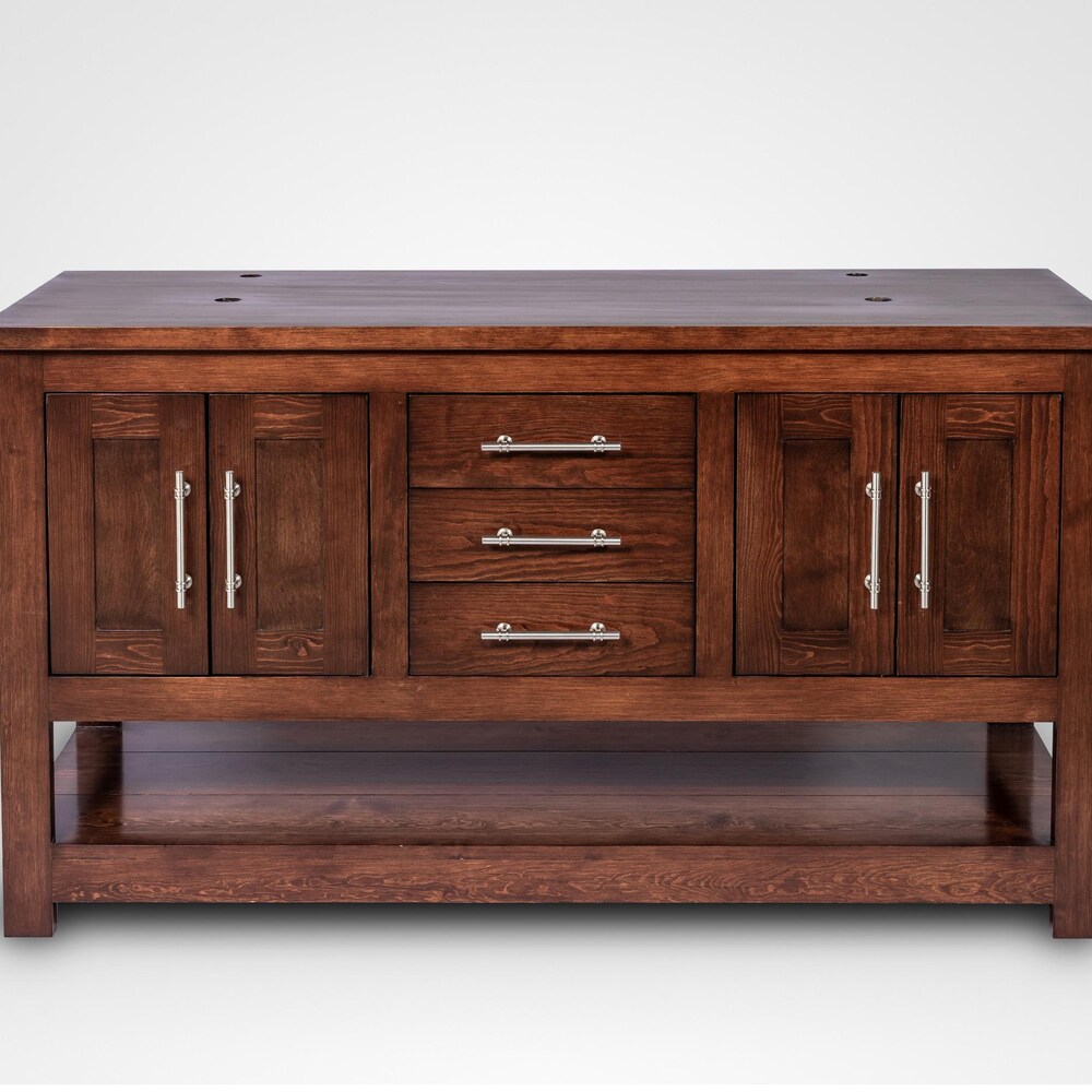 Double Sink Bathroom Vanity with Solid Wood Countertop, Custom Farmhouse Vanity in Solid Pine Wood
