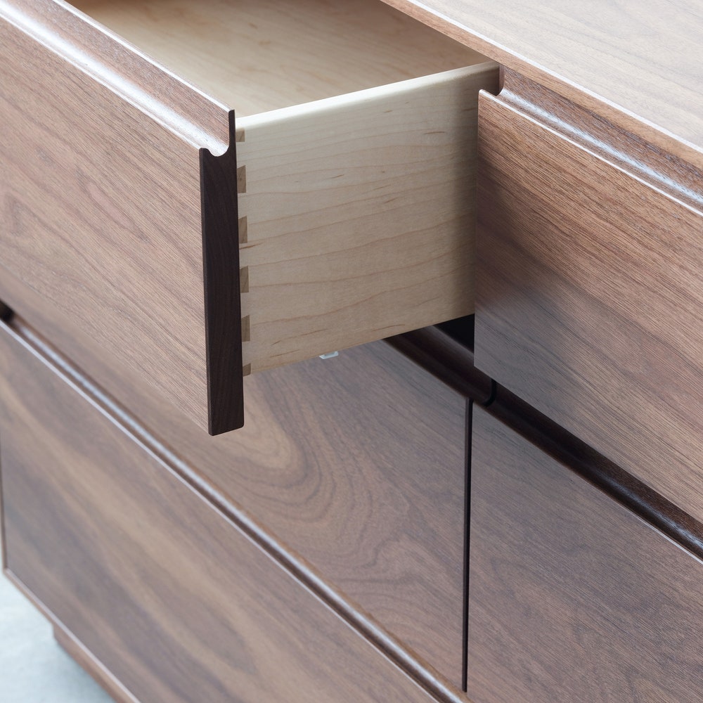 Introducing our new Douglas Dresser!This dresser features continuous grain across both columns of drawers, highlighting the beauty of the natural hardwood. Drawers are constructed with dovetail joinery, and placed on under mount, soft close slides. Pictured: Walnut. Also available in Cherry, White oak, or Maple. Dimensions: 46″W x 17.25″D x 25″HRouted pulls Finished with a […]