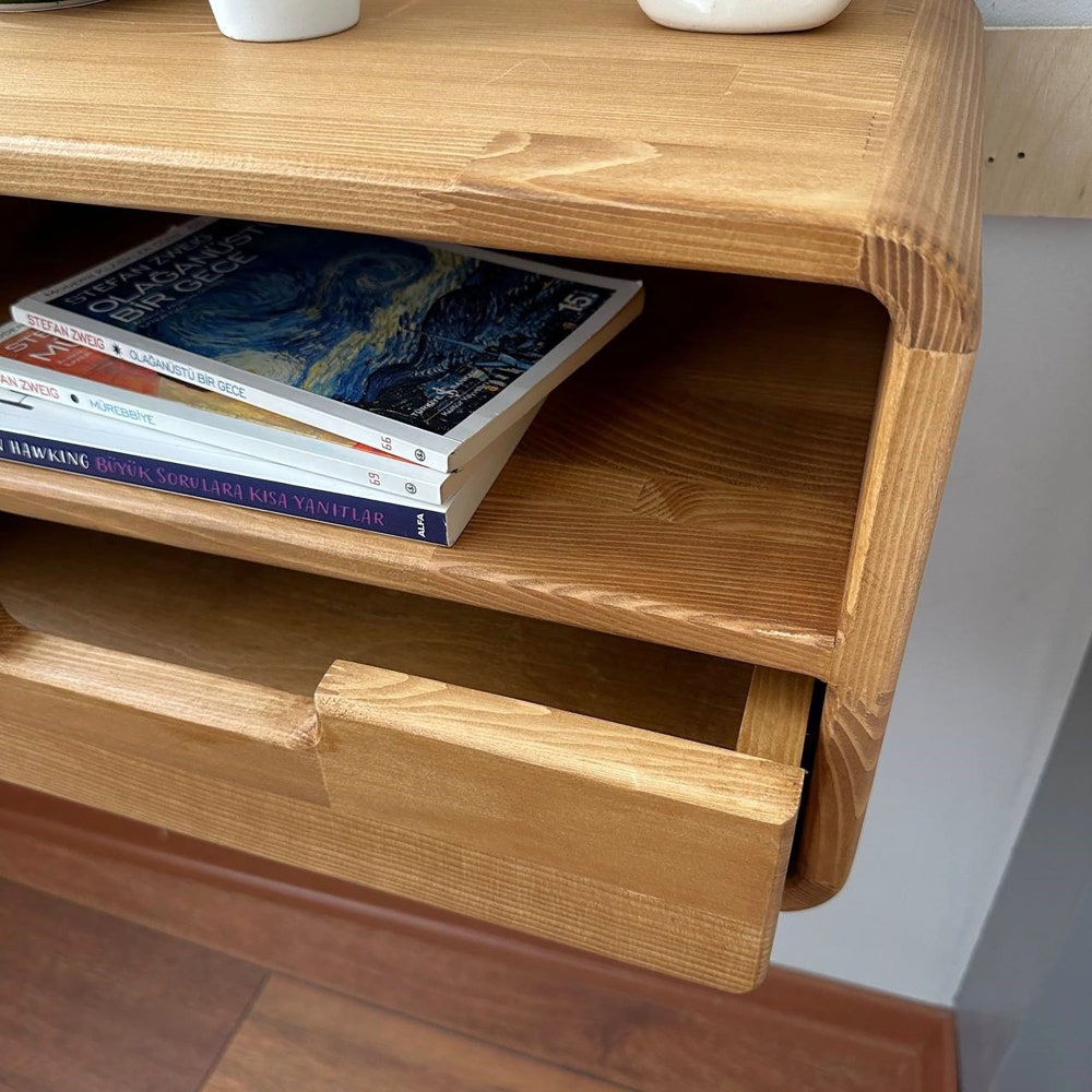 This nightstand, which is completely handmade, is made entirely of natural wood.
