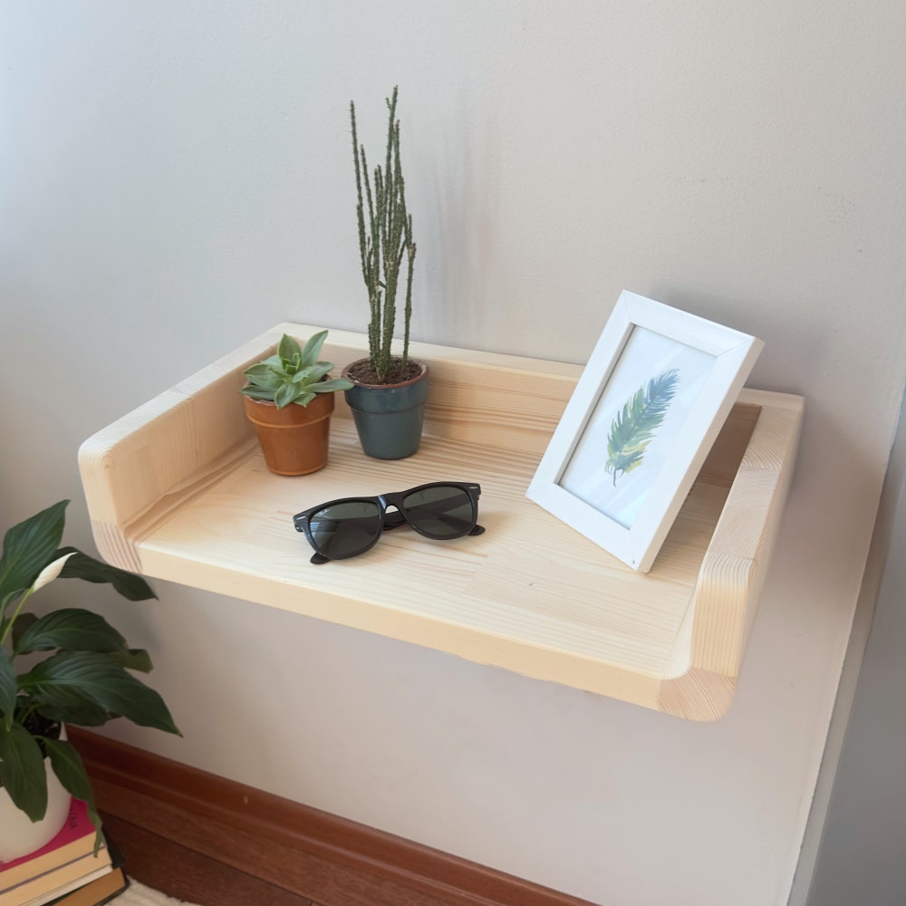 This completely handmade nightstand is made entirely of natural wood.