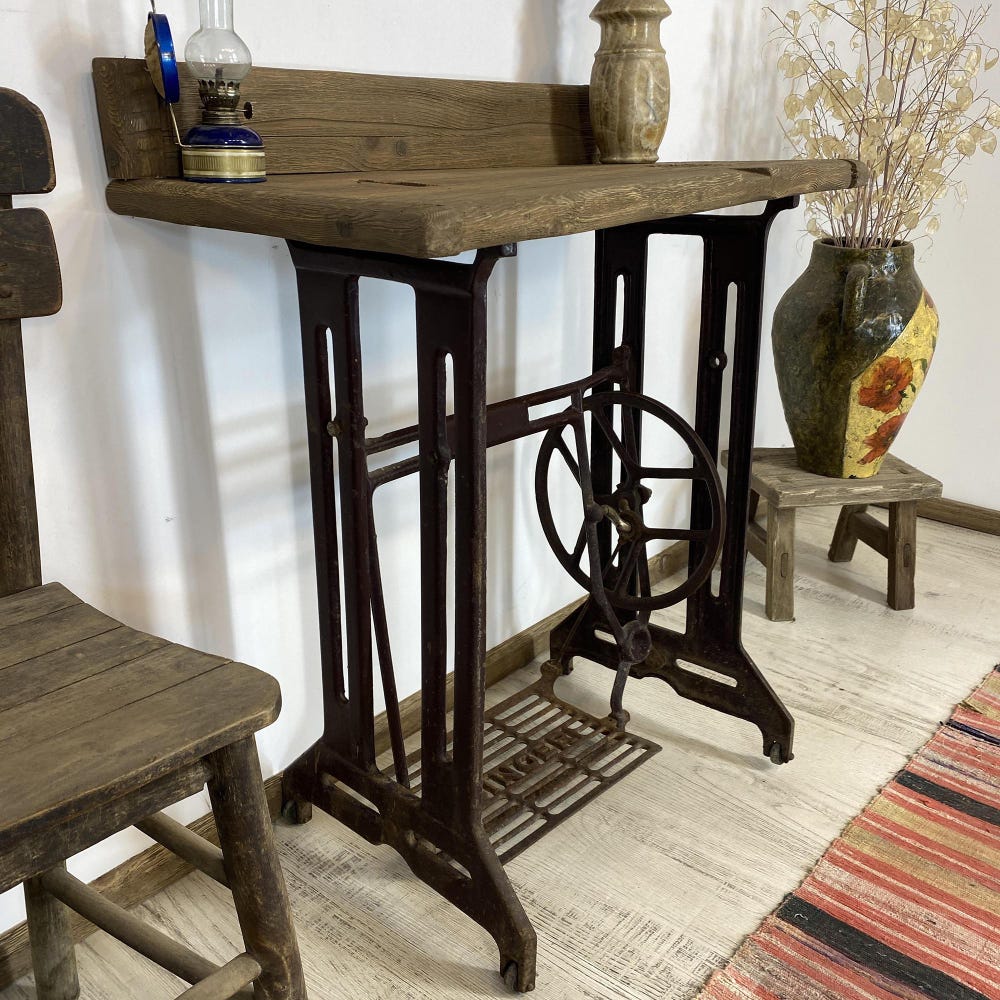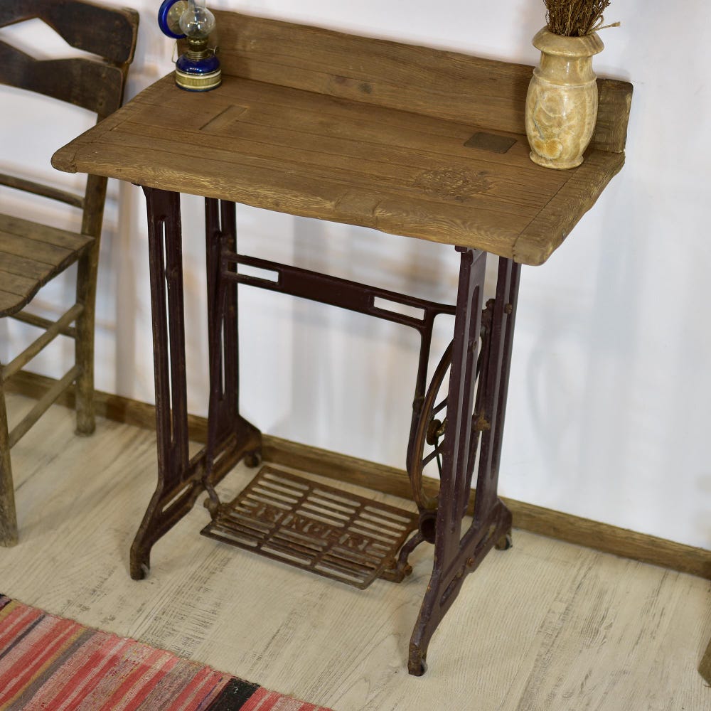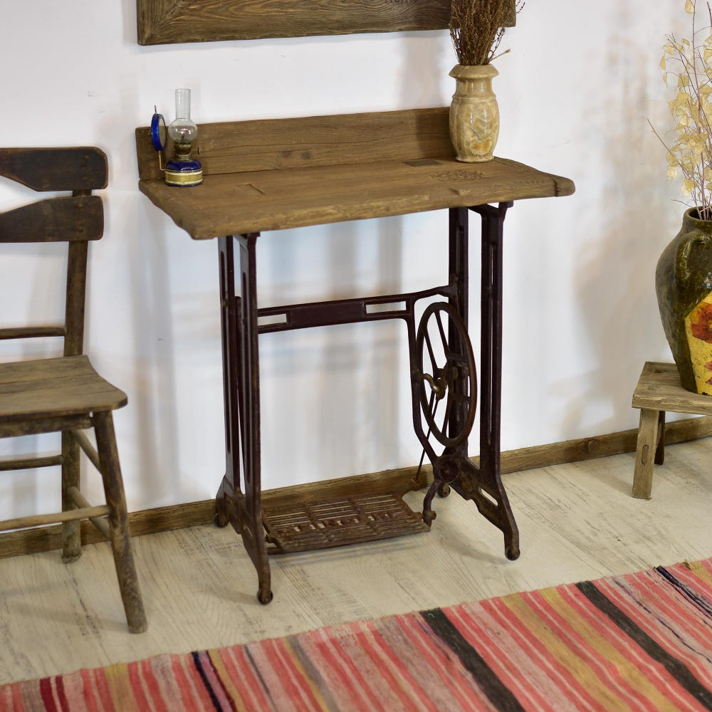 Dresser Table Antique Metal Legs Machine Rustic Wood Historic Console Table Hallway Furniture Entryway Live Edge Entryway Desk Wooden Handmade Gift for Women