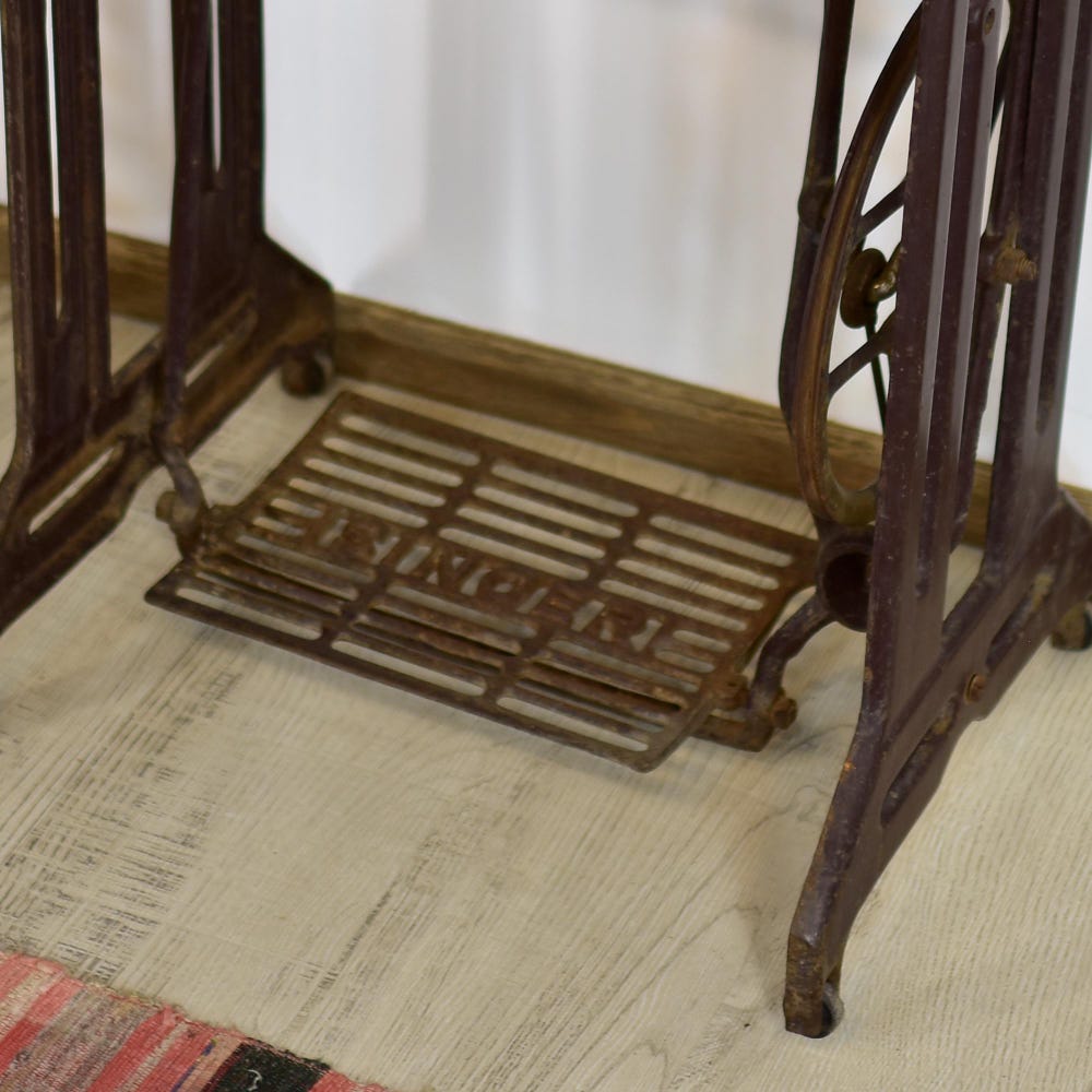 The iron feet are original antique brand sewing machine legs and are over 50 years old.