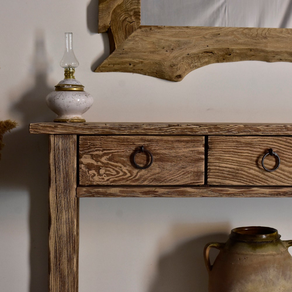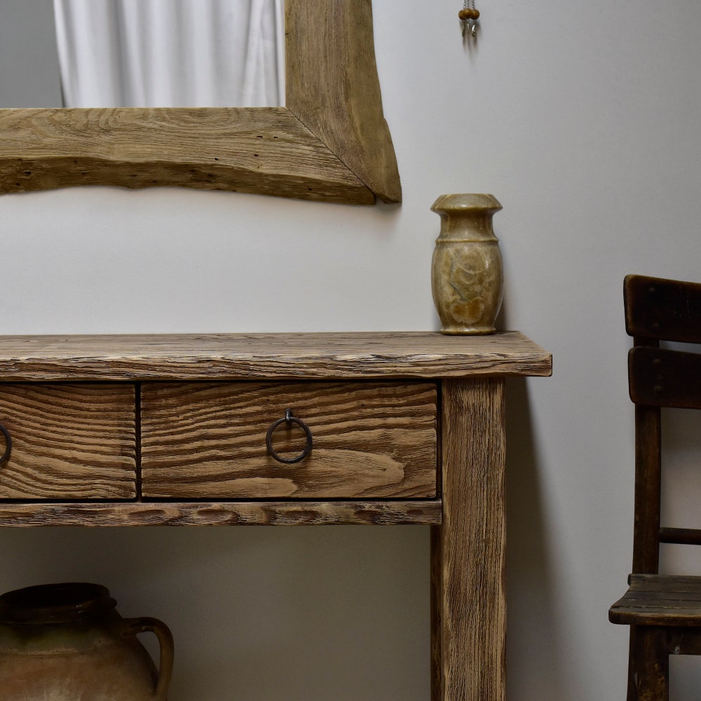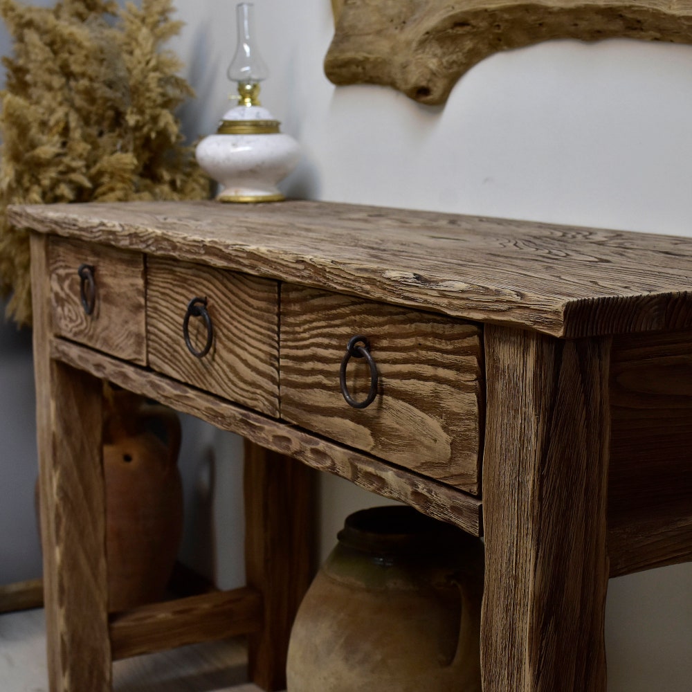 Dresser table candmade rustic chestnut wood console table Hallway furniture Entryway live edge desk with drawers reclaimed wood women gift