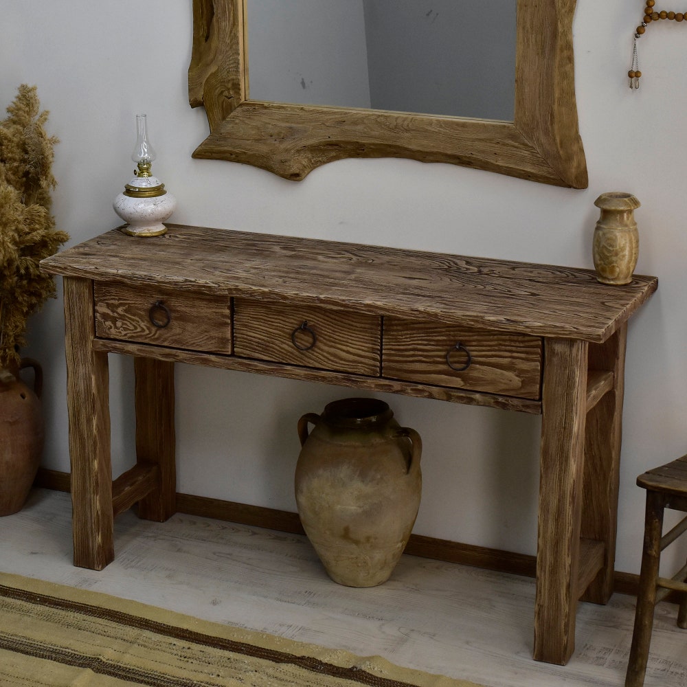 Rustic dresser table console table hallway furniture entryway live edge entry table reclaimed wood handmade gift for women