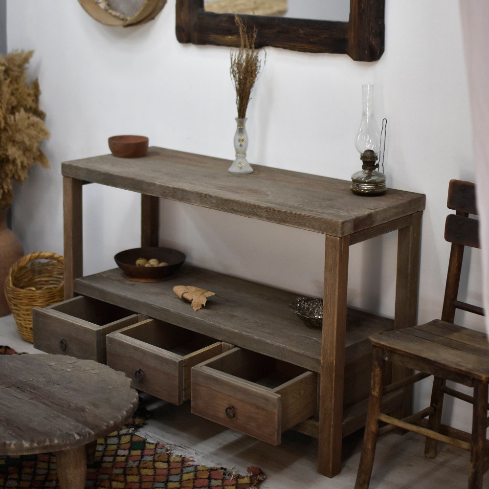 Dresser table handmade rustic Chestnut wood console table Hallway furniture Entryway live edge desk with drawers reclaimed wood women gift