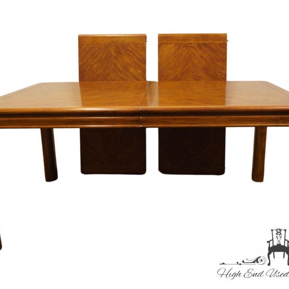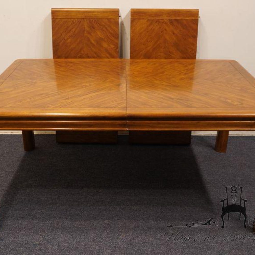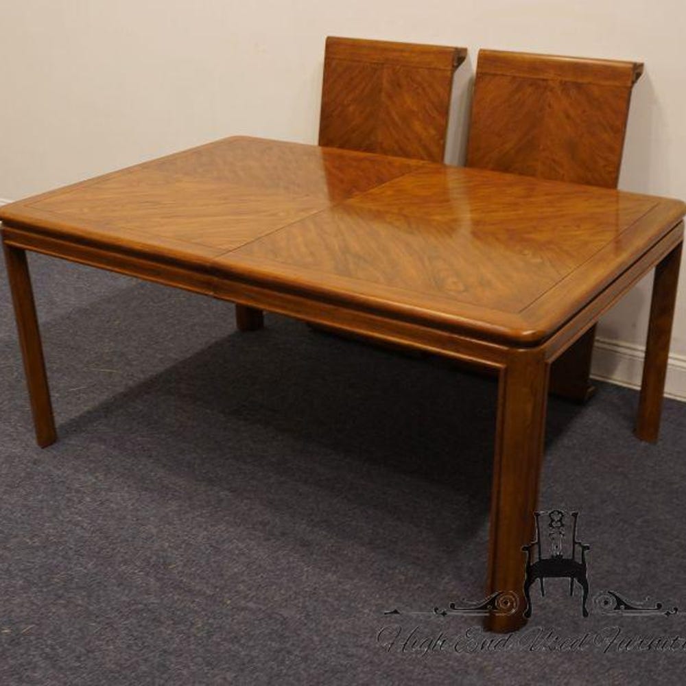 DREXEL FURNITURE Passage Collection Bookmatched Walnut Contemporary Asian Inspired 82″ Dining Table 965-342