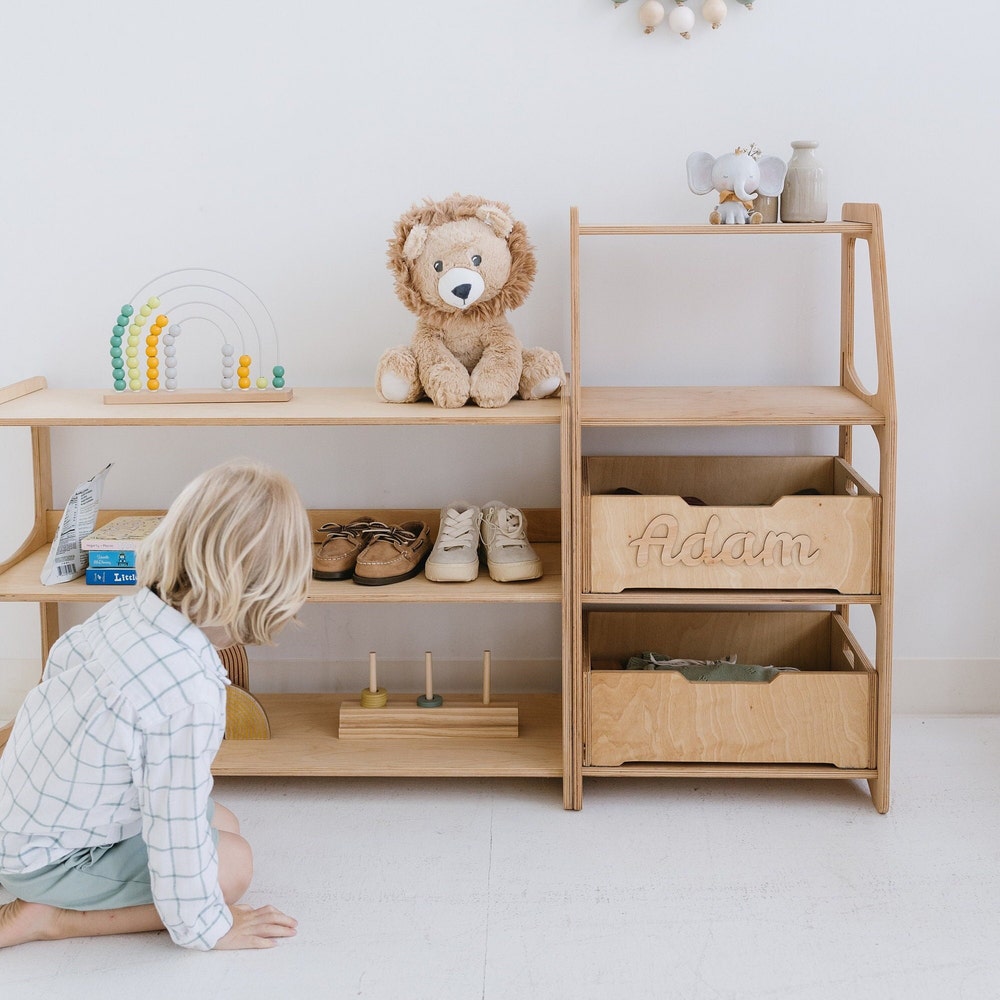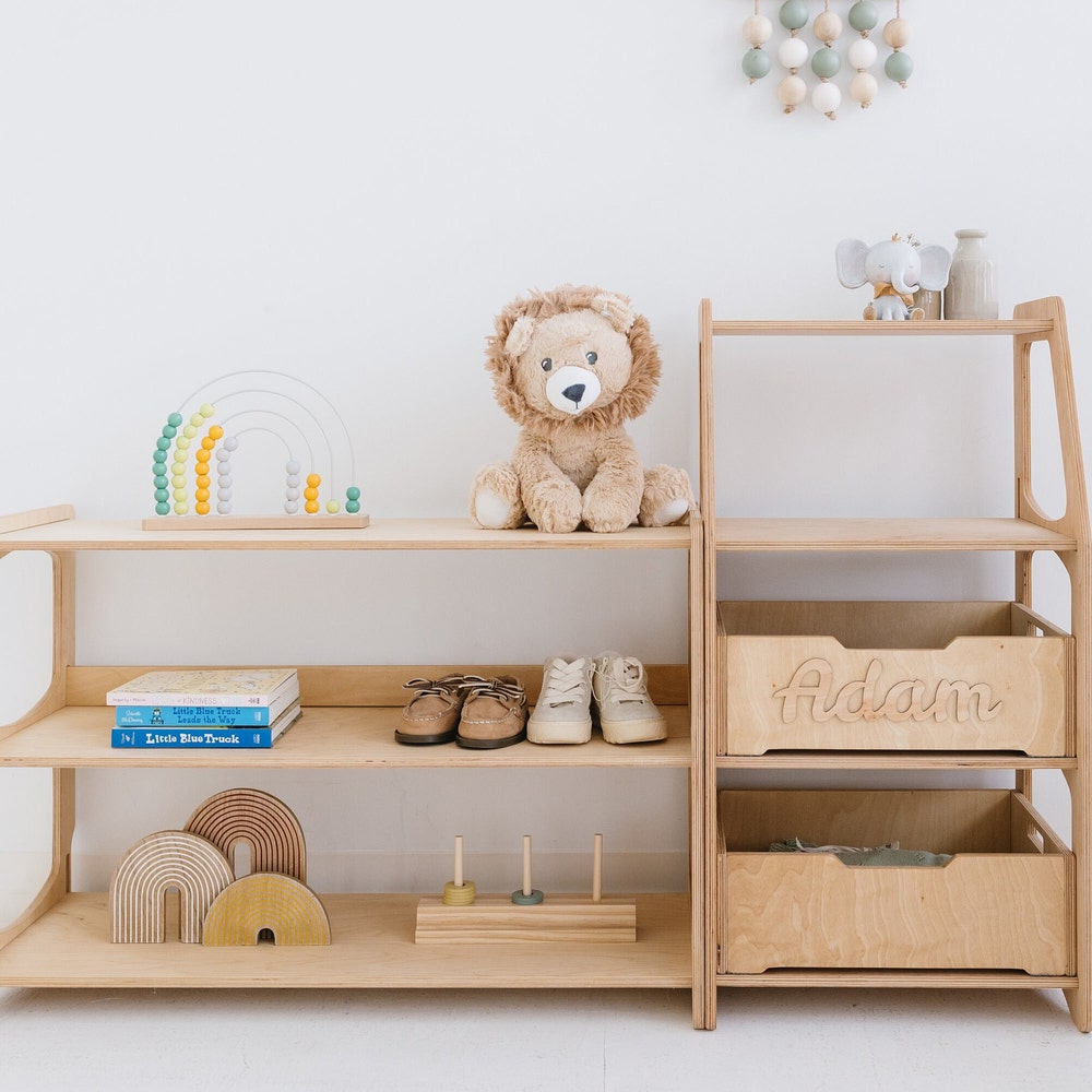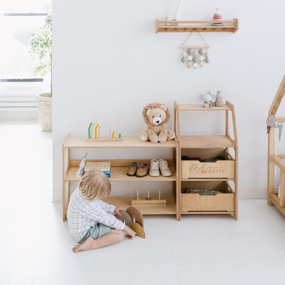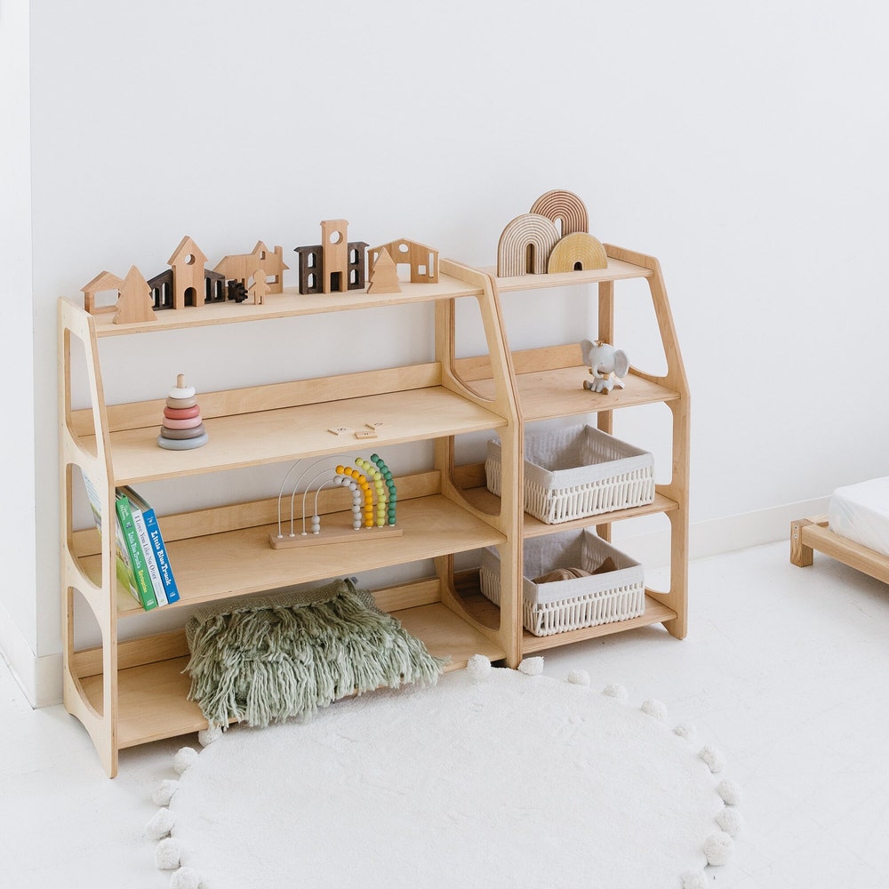 Educational Montessori Inspired Shelves for Preschool Classroom, Kids bookshelf, Toddler Furniture, Playroom Storage, Open shelf unit