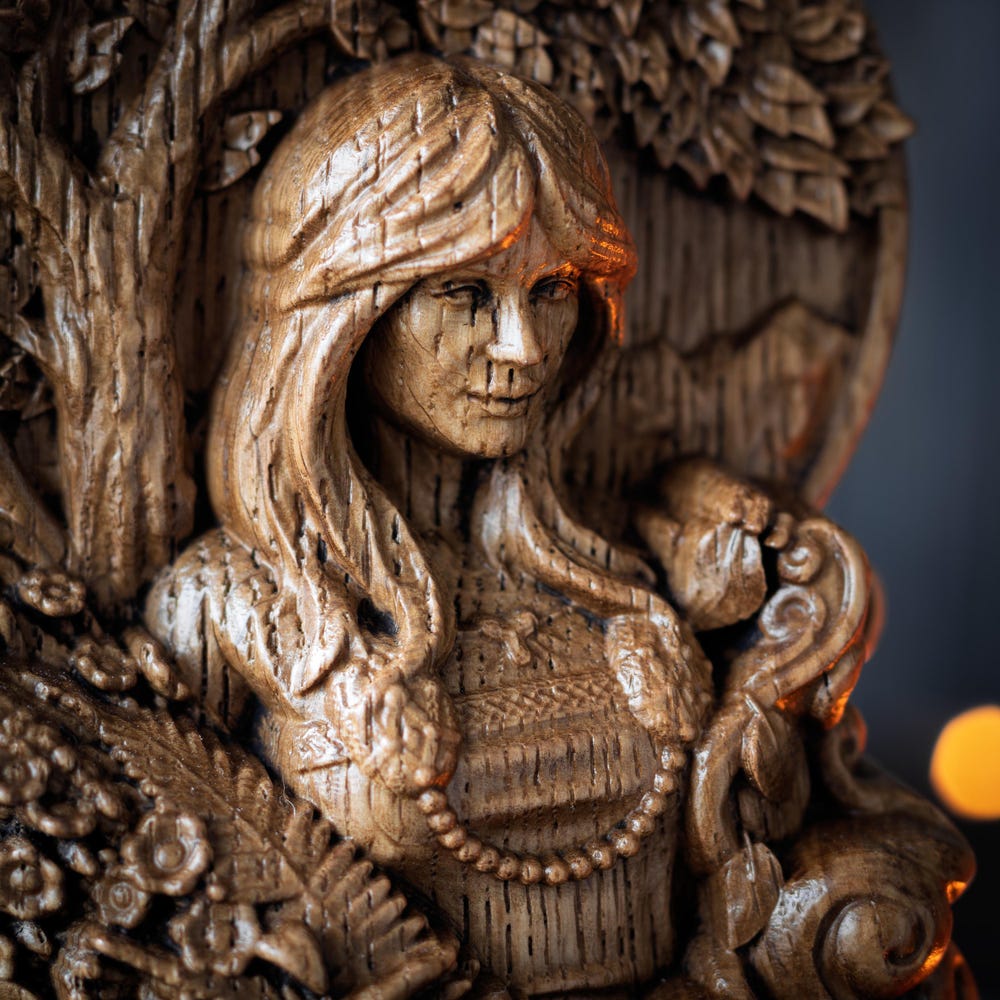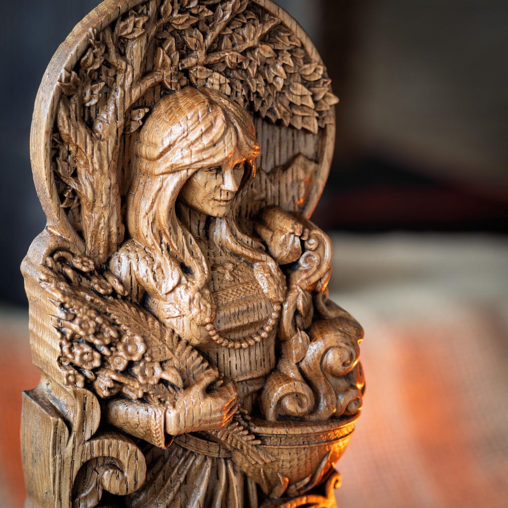 Eir Norse Healing Goddess Statue – Handmade Oak Wood Pagan Altar Decor