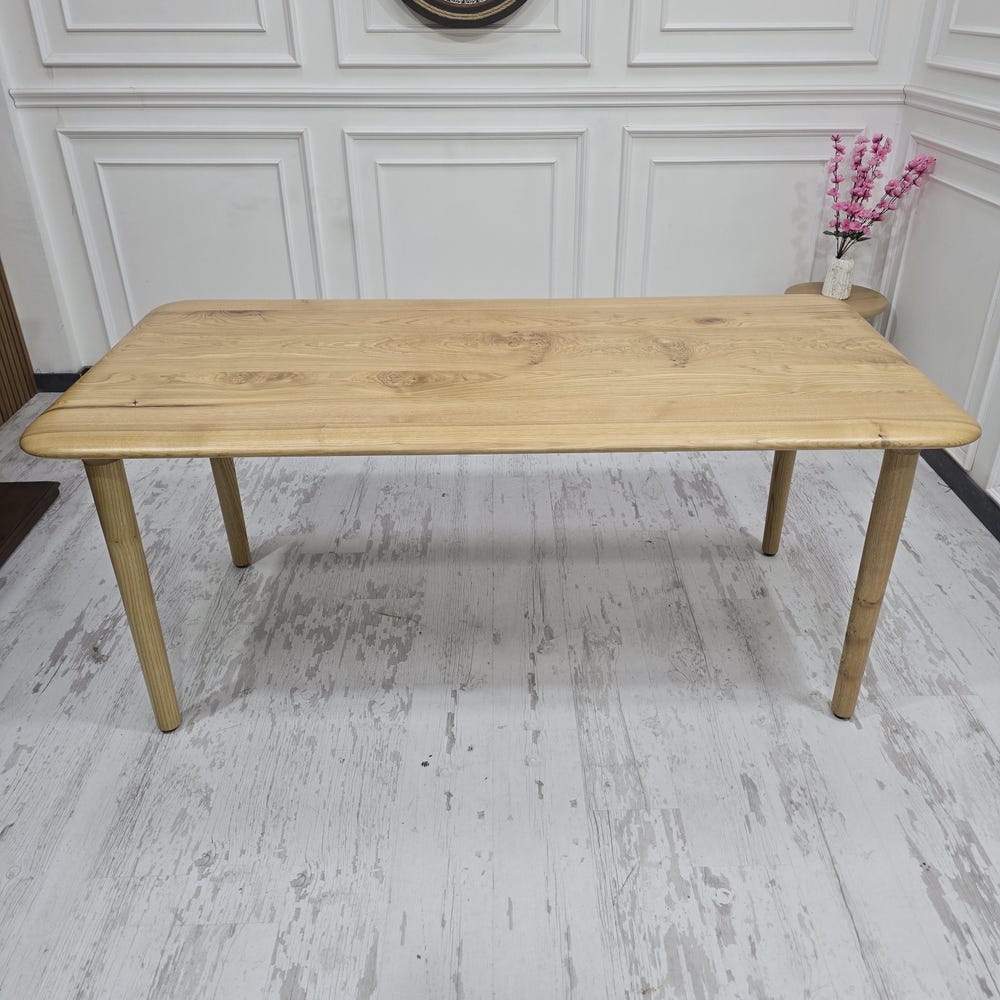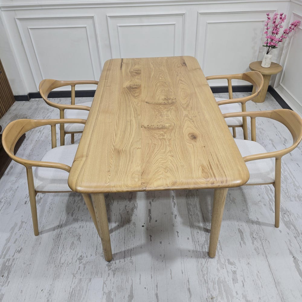 Upgrade your dining experience with our exquisite Chestnut Dining Table and Chair Set. This beautifully crafted furniture set combines timeless elegance with modern design, making it the perfect addition to any dining room. Unique, special design with soft edges and handmade production just for you, your home and your kitchen.