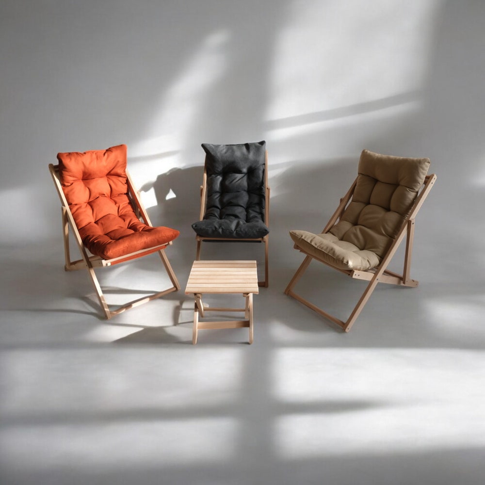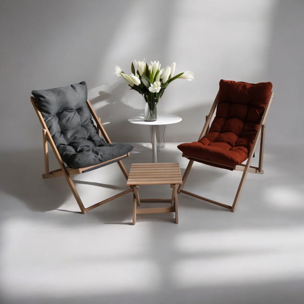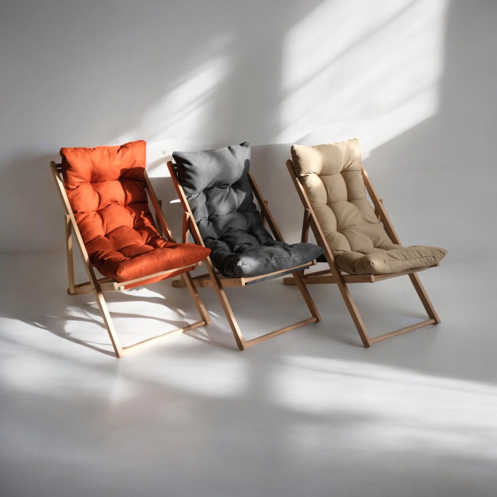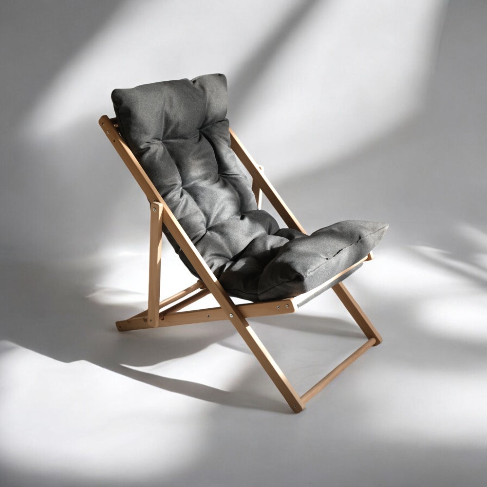 🌟 Introducing our handcrafted wooden sun lounger – the perfect addition to any garden, patio, or poolside. Designed to offer the ultimate relaxation experience, this elegant chaise lounge chair masterfully combines functionality with a touch of rustic charm. Our folding deck chair is your new companion for outdoor comfort and style. The sturdy frame is complemented by a plush, water-repellent cushion that invites you to indulge in comfort without concern — perfect for poolside reading or soaking up the sunshine on your patio.