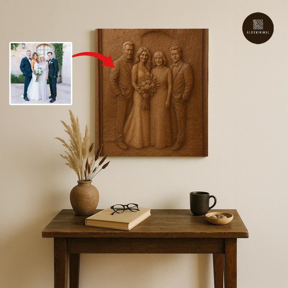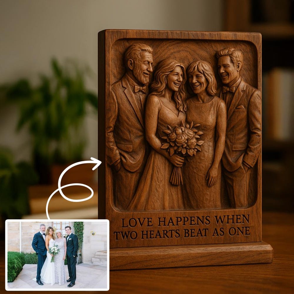 Turn a cherished photo into a stunning hand-carved wooden relief — a piece of art that captures love, connection, and memory in every chisel mark. Whether it’s a family moment, wedding memory, or celebration of life, this personalized wood sculpture brings timeless warmth into your space.