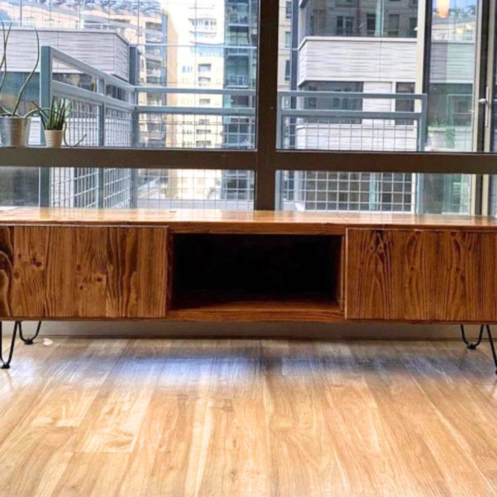 Made in the USA Minimalistic handmade wooden furniture arrives fully assembled. Customize by choosing your desired length, stain, and adding any upgrades. Works perfectly in the living room, bedroom, or office.