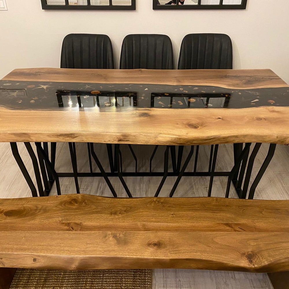 Epoxy Dining Table / Liveedge Epoxy Wood Table / Walnut Resin Table / Custom Design and Handmade River Epoxy Table