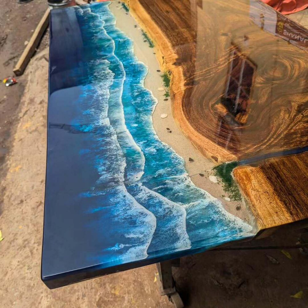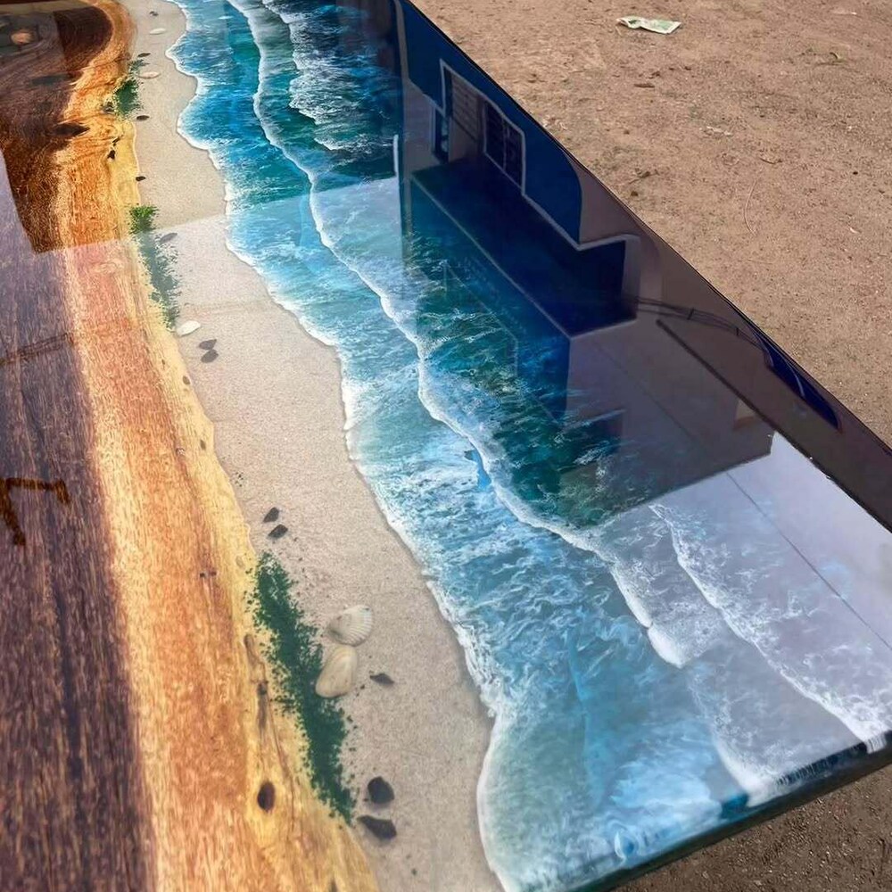 Custom Made Epoxy River Table Top is gorgeous and one of a kind looking Table has ever lasting appeal and gives an Elegance look to your home. The resin river table is brand new and the contemporary design would be a unique addition to your home. With its perfect combination of style and function this piece of furniture is sure to be the star of any room. This modern table will also make for an awesome gift for your friends or relatives.All tables are finished to the highest standard. The epoxy resin is very strong & durable with specialized UV resistance