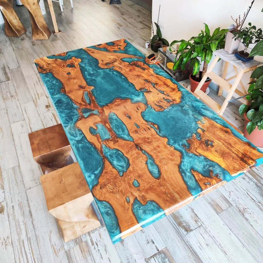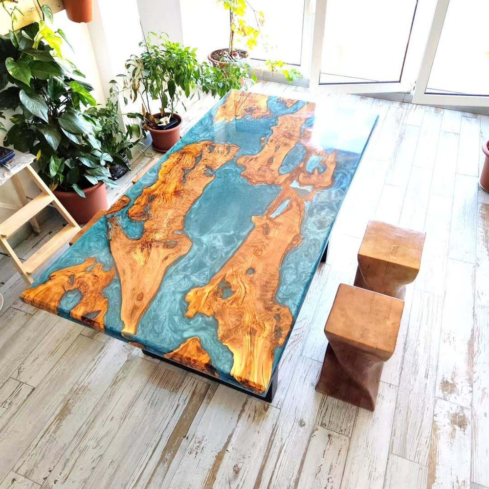 Custom Made Epoxy River Table Top is gorgeous and one of a kind looking Table has ever lasting appeal and gives an Elegance look to your home. The resin river table is brand new and the contemporary design would be a unique addition to your home. With its perfect combination of style and function this piece of furniture is sure to be the star of any room. This modern table will also make for an awesome gift for your friends or relatives.All tables are finished to the highest standard. The epoxy resin is very strong & durable with specialized UV resistance