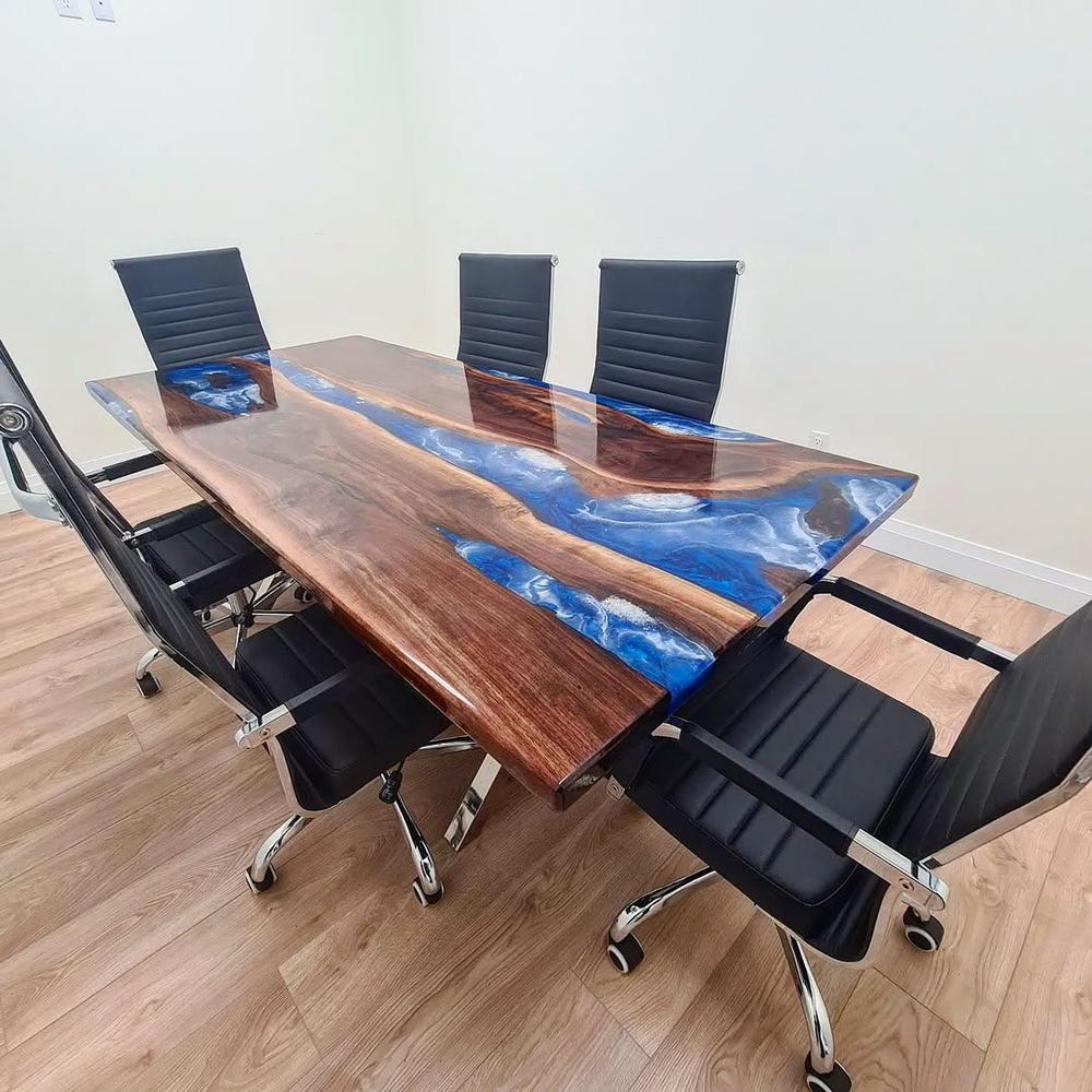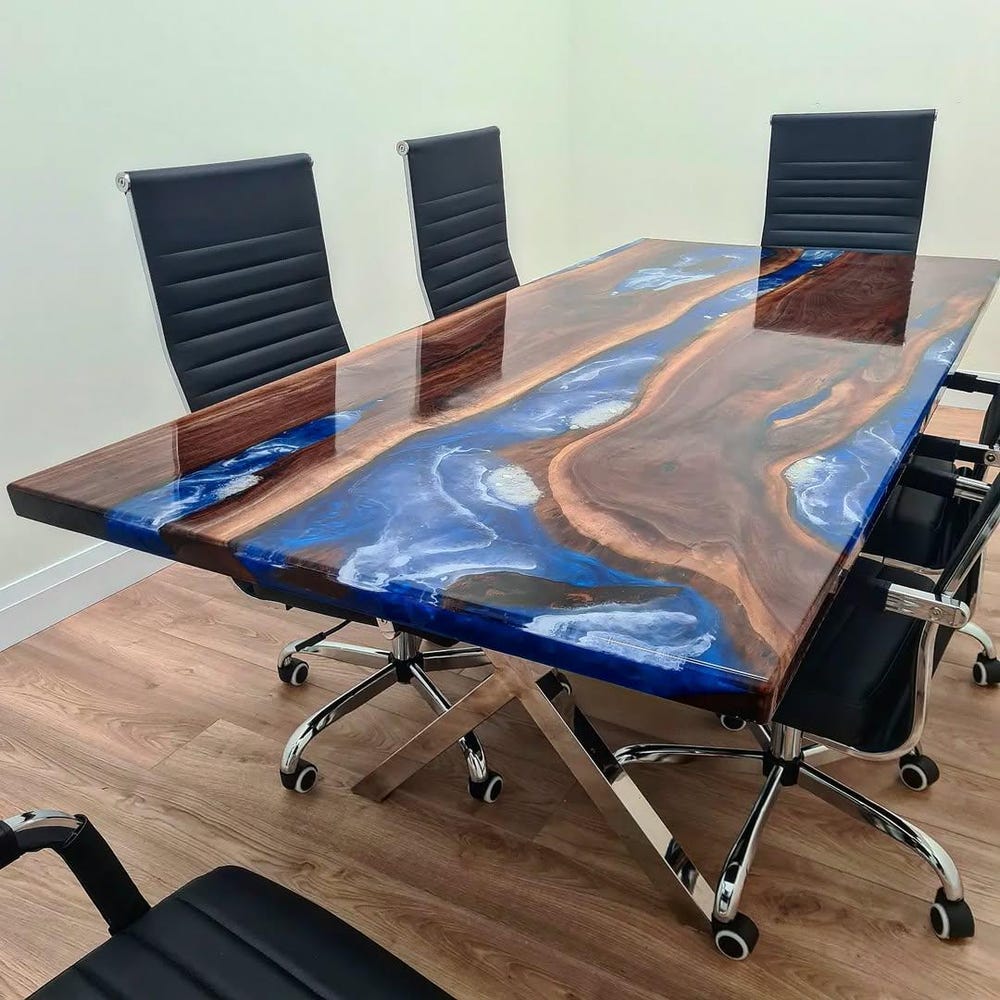 Custom Made Epoxy River Table Top is gorgeous and one of a kind looking Table has ever lasting appeal and gives an Elegance look to your home. The resin river table is brand new and the contemporary design would be a unique addition to your home. With its perfect combination of style and function this piece of furniture is sure to be the star of any room. This modern table will also make for an awesome gift for your friends or relatives.All tables are finished to the highest standard. The epoxy resin is very strong & durable with specialized UV resistance
