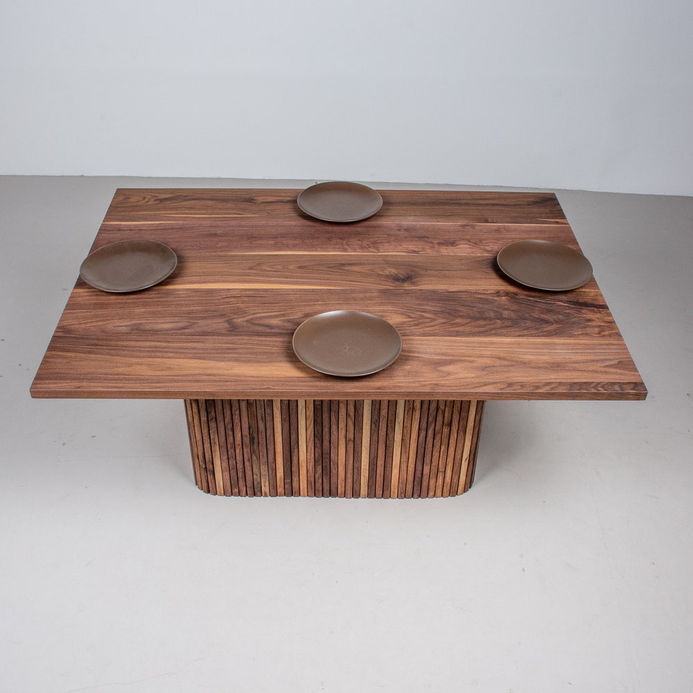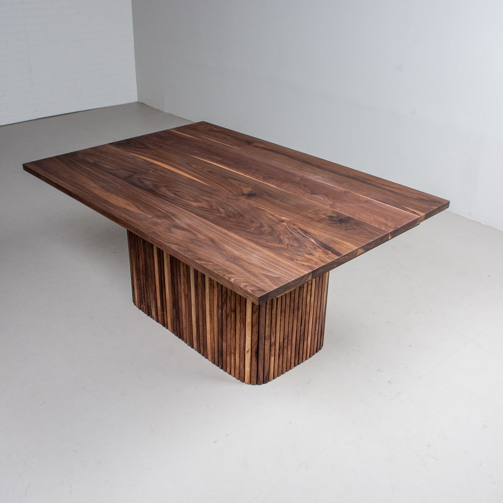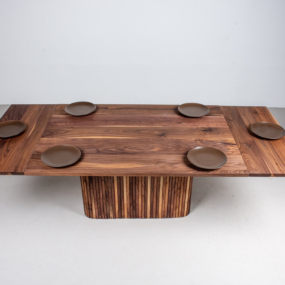 Extendable Dining Room Table, Walnut Extension Table on Pedestal Base, Wood Dining Table with Leaves, Customizable Extending Pedestal Table