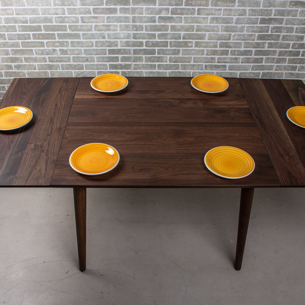 Extendable Mid Century Dining Table, Extending Square Walnut Table, Walnut Extension Table with Leaves, Square Dining Table with Leaves