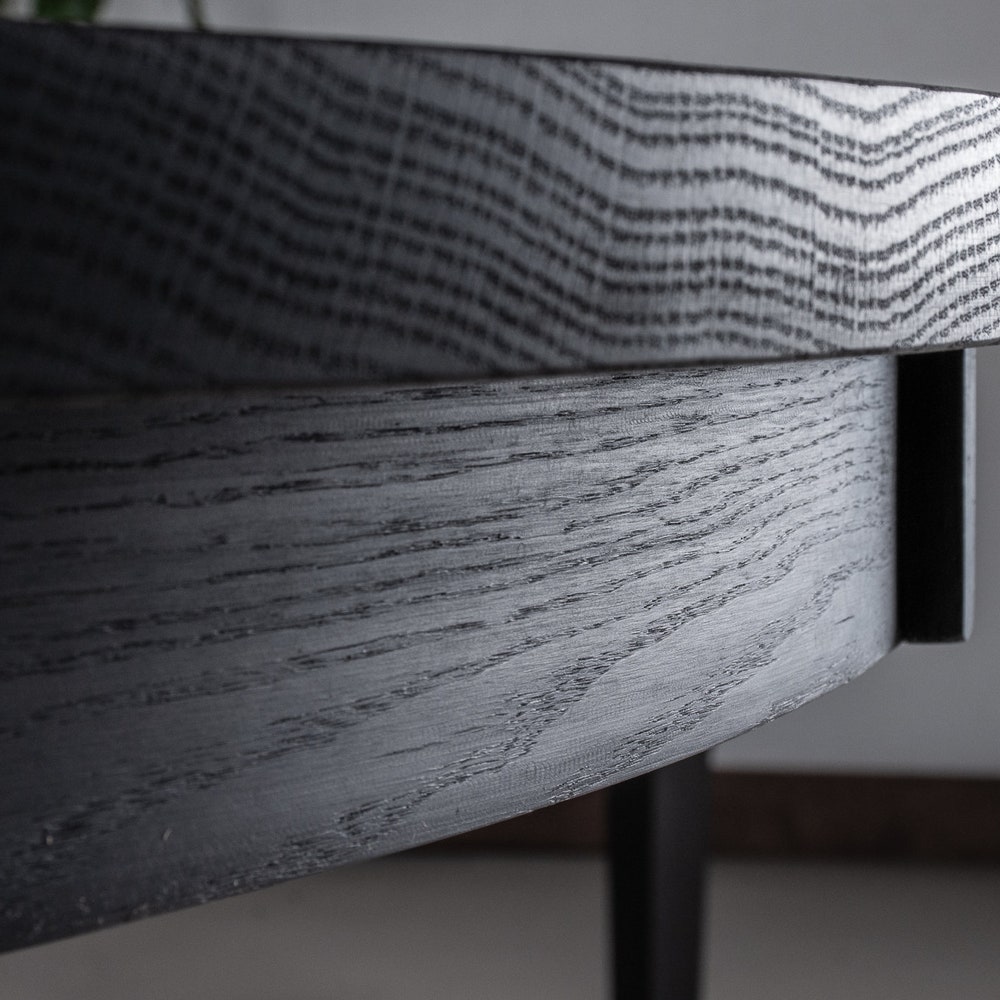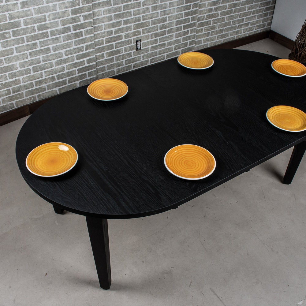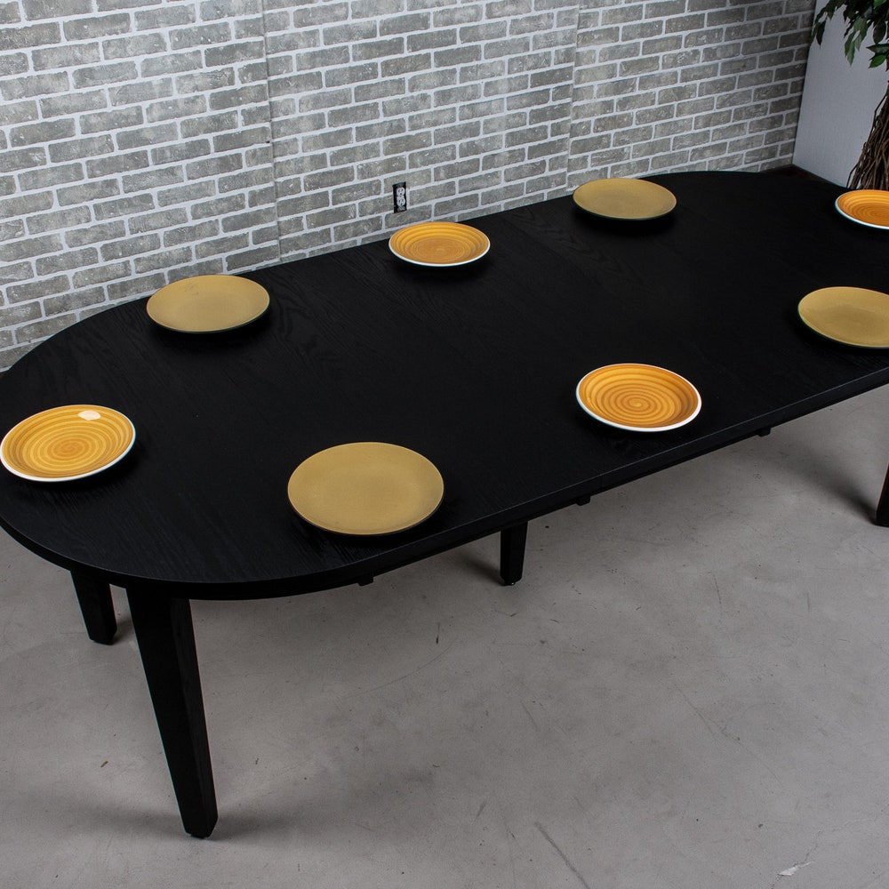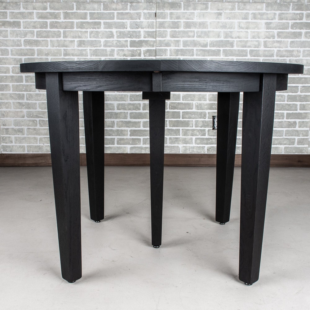 Extendable Round Dining Table, Round Wood Table with 4 Leaves, Round Extending Table, Small Round Extension Table, Black Oak Dining Table