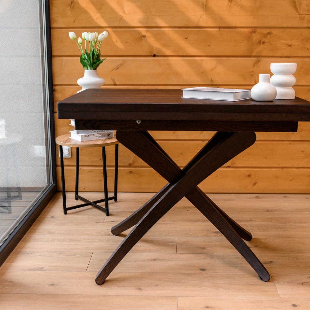 Extendable Transformer Table | 3-in-1 100% Wooden Table | Adjustable Height | Multifunctional Coffee & Dining Table | For European Customers