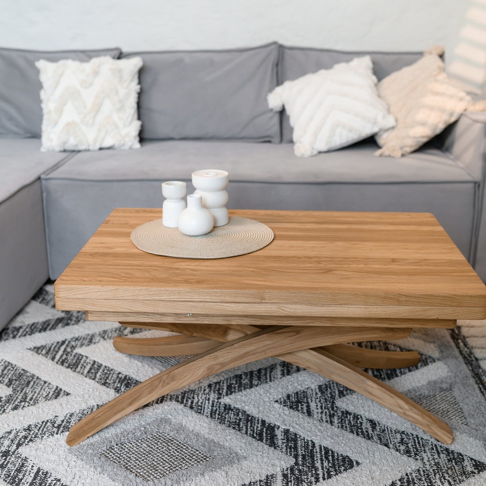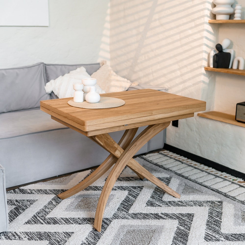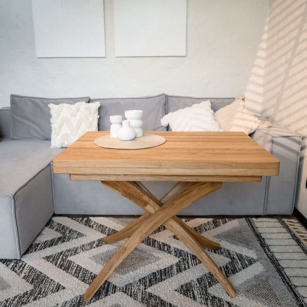 Extendable Transformer Table | 3-in-1 100% Wooden Table | Adjustable Height | Multifunctional Coffee & Dining Table | For European Customers