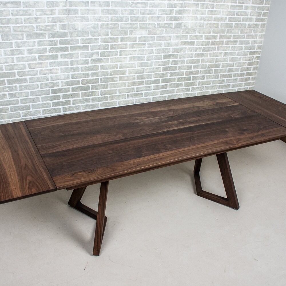 Extendable Wood Dining Table, Blackened Walnut End Extension Table, Walnut Table with Leaves, Wooden Table with Extension, Dark Walnut Table