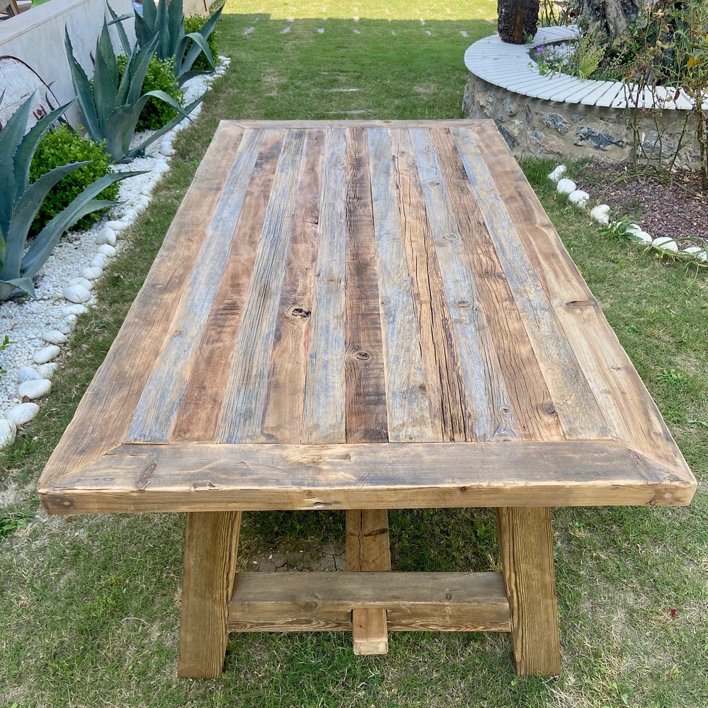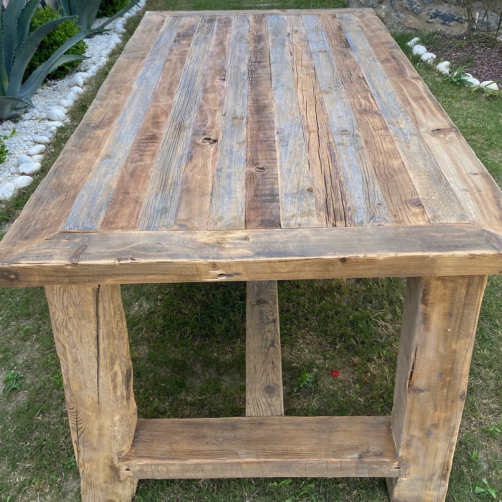 ♻️ Our unique Dining Table is made with 60 years old wood. No polish or aging has been applied to the table top you see in the picture. I would like you to take a detailed look at the natural color and texture of the wood.