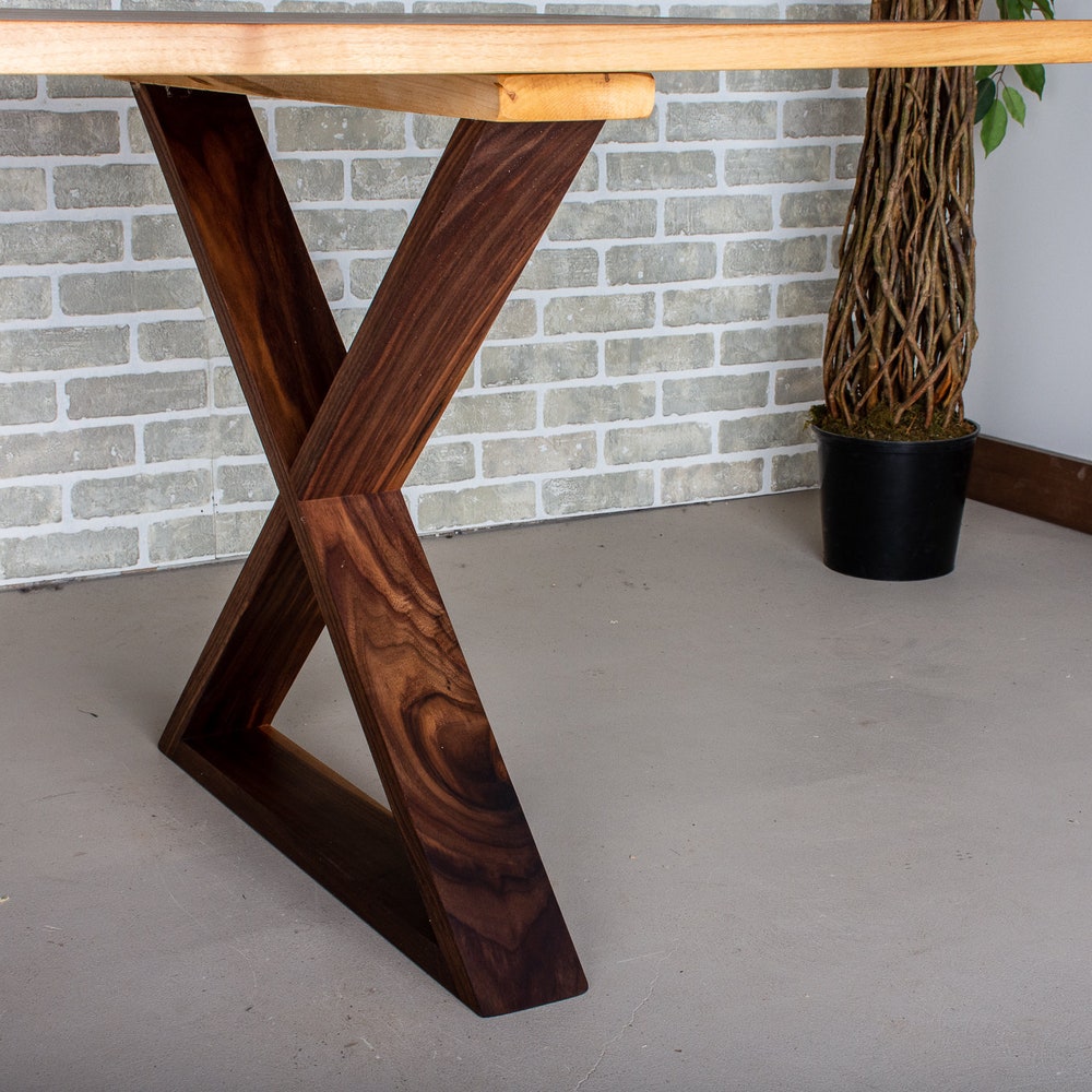 Farmhouse Kitchen Table, Walnut Table on Walnut X Legs, Wood Table for a Modern Farmhouse Dining Room, Solid Walnut Dining Table