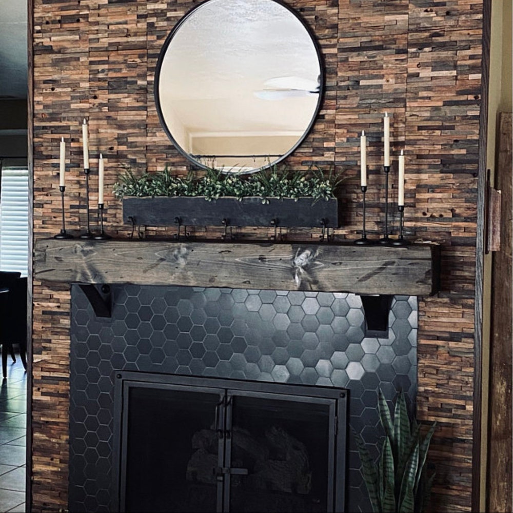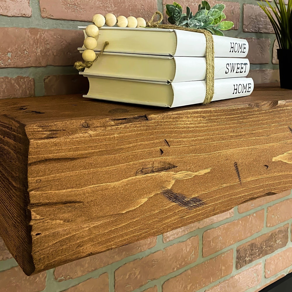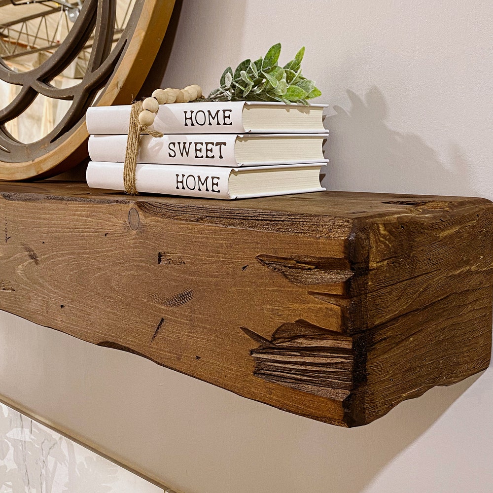 Hand made hollow distressed fireplace mantel. Our distressed floating fireplace mantels are hand-hewn and made with love and passion. These mantels are as beautiful as they are useful, robust, light, and elegant.