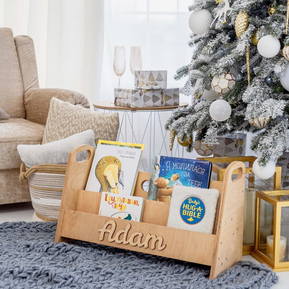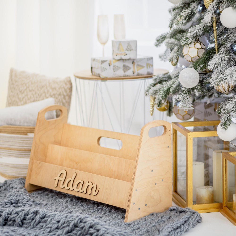 First Christmas Gift – Modern bookshelf, Montessori furniture, Nursery shelves, Toddler book toy storage, kinderbücherregal