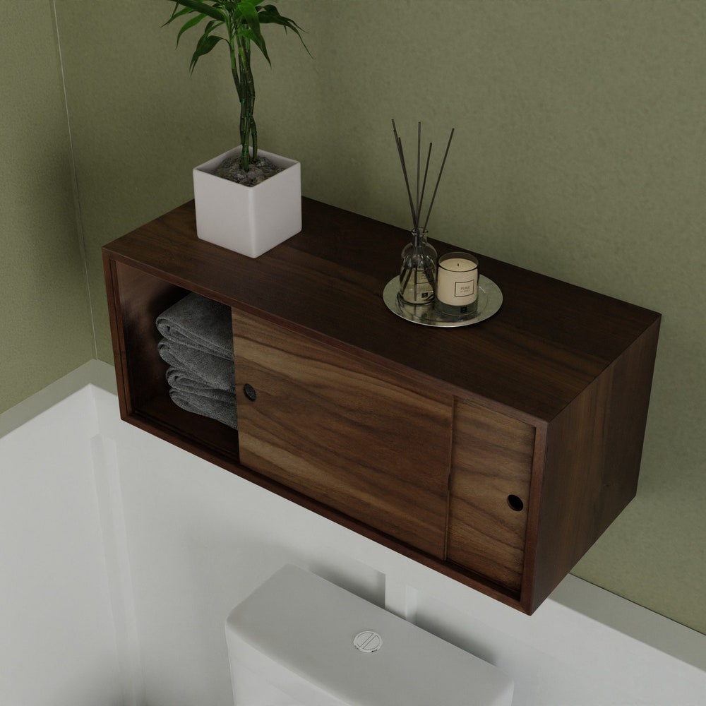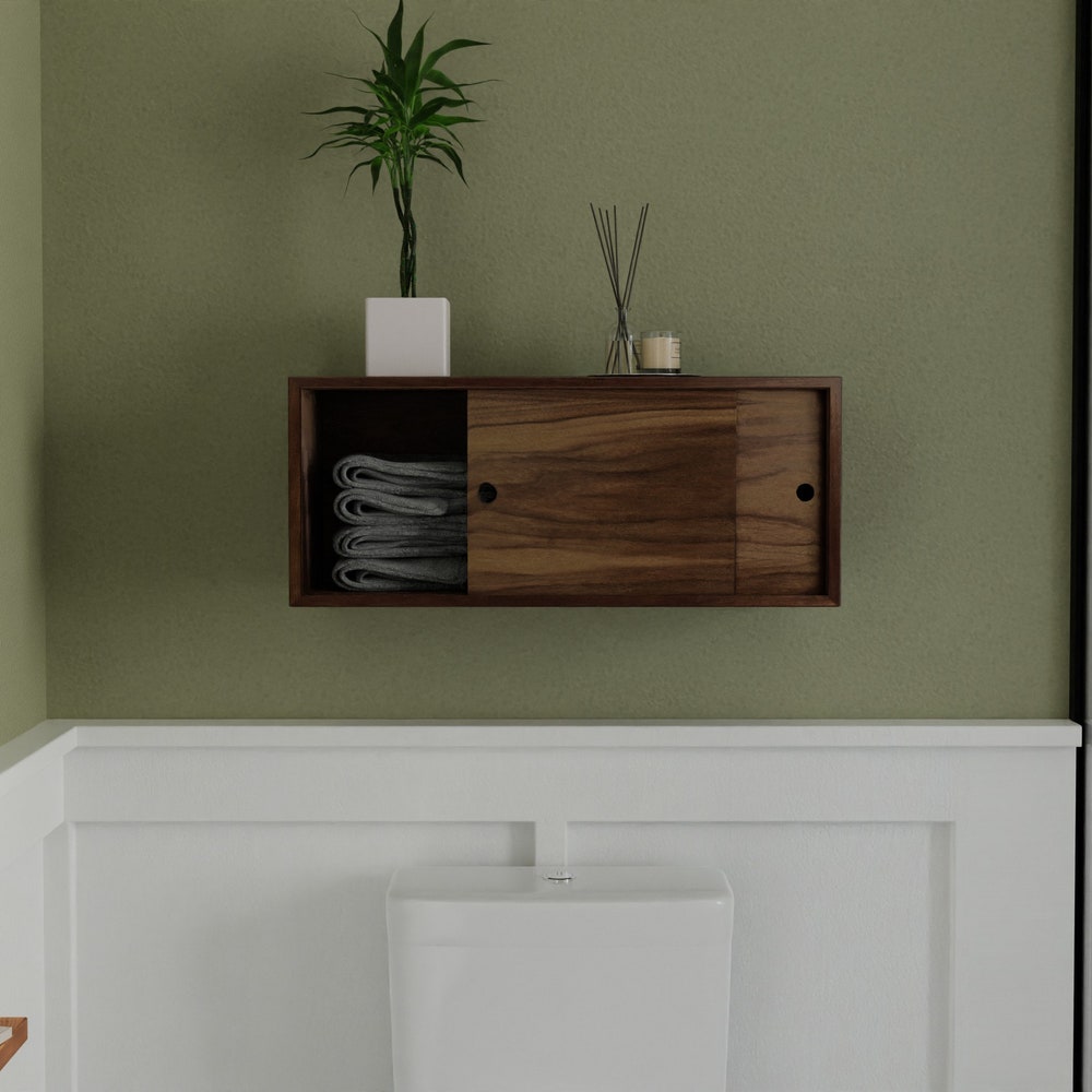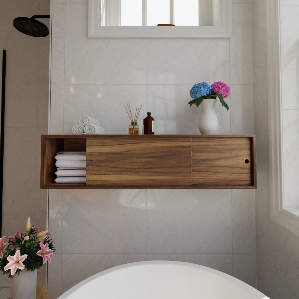 Floating Bathroom Storage Cabinet with Sliding Doors, Vanity, Console, Bathroom Floating Shelf, Bath Wall Decor