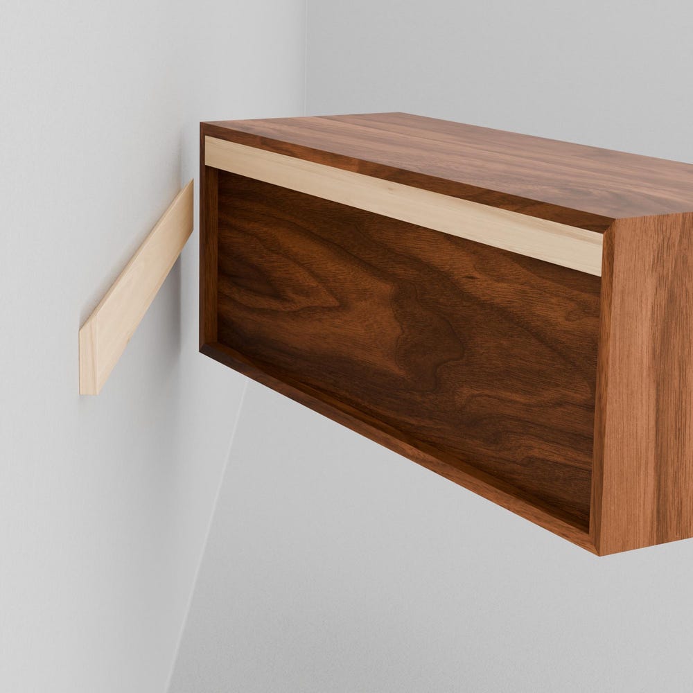 Each piece is fitted with an integrated solid wood French Cleat for easy install. All mounting hardware (included) is hidden behind the back for a clean, “floating” appearance.