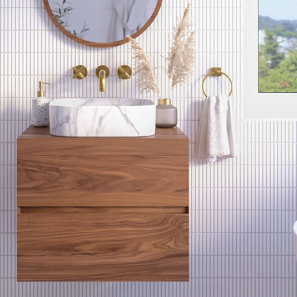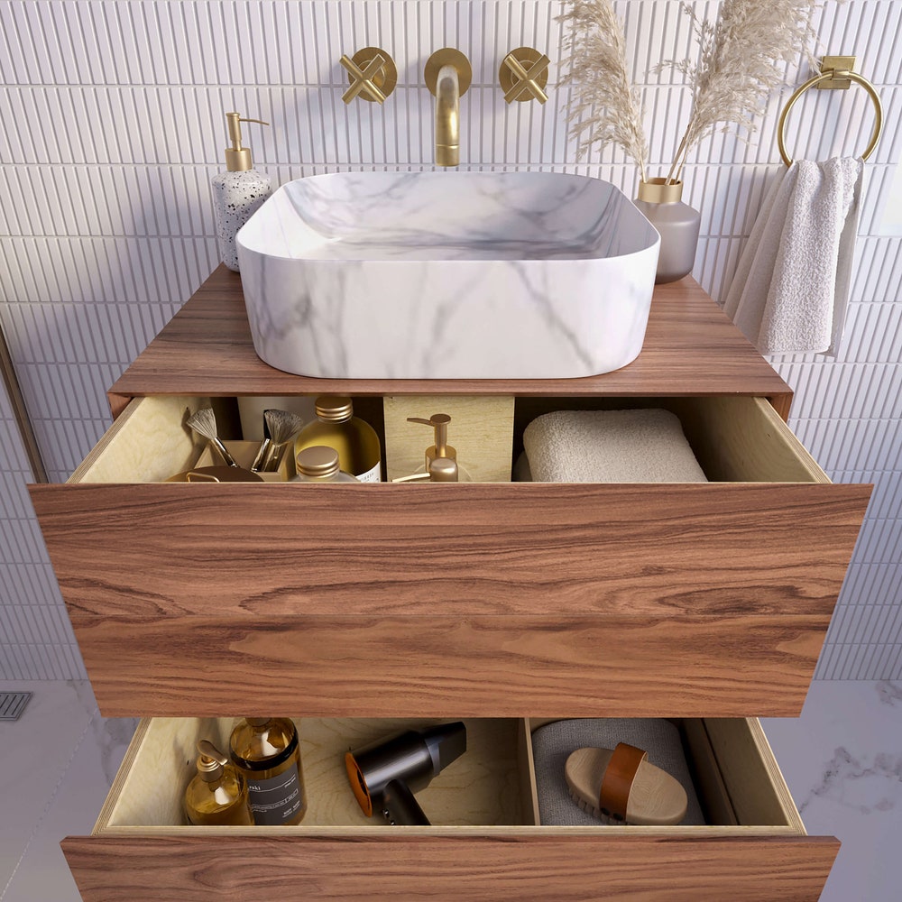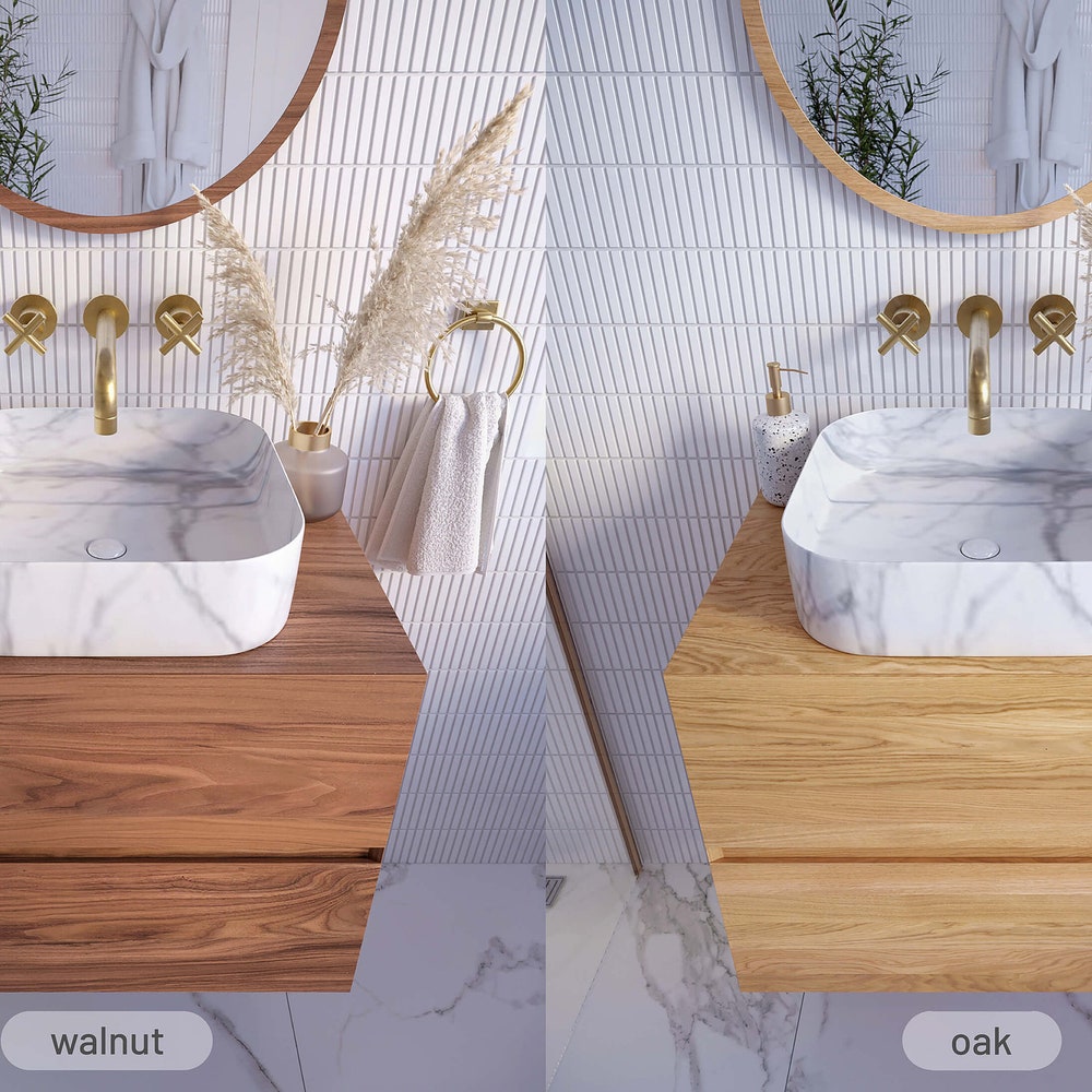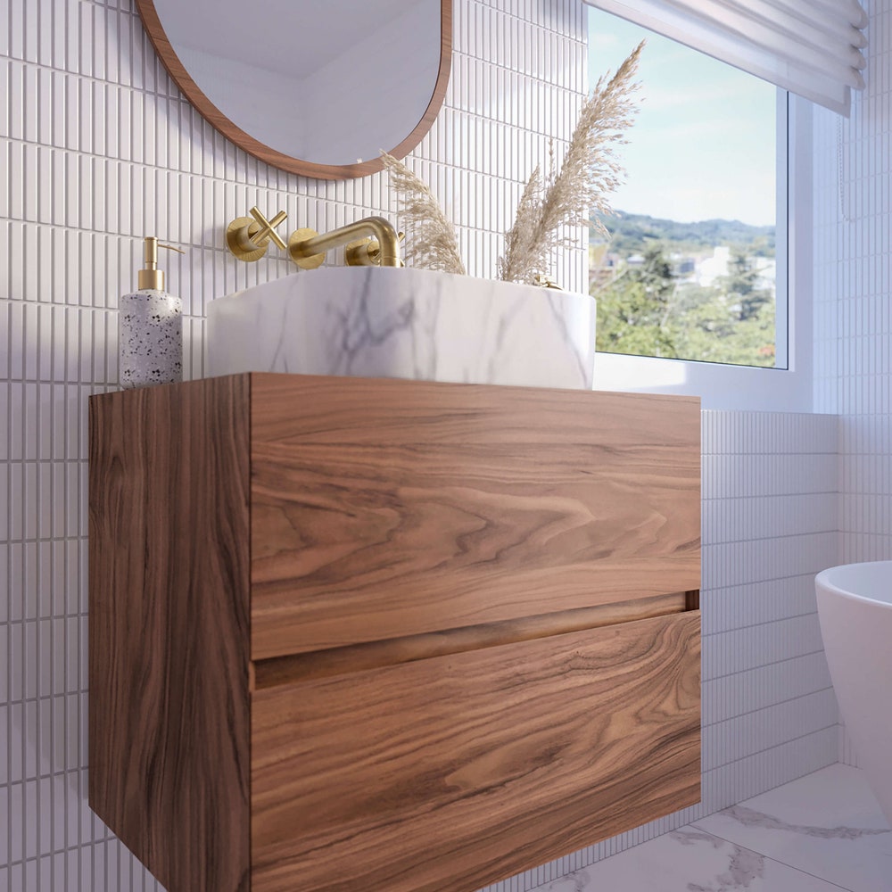 Floating bathroom vanity with 2 drawers / walnut, oak