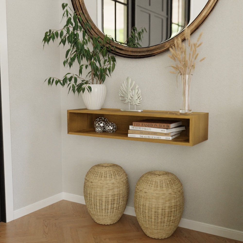 Each piece is fitted with an integrated solid wood French Cleat for easy install.