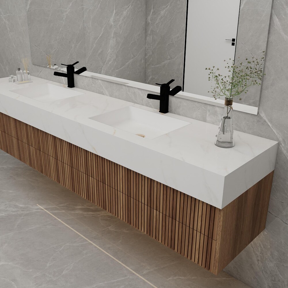 Floating Custom Walnut bathroom 95 inc vanity , Handmade Wood Vanity Cabinet, Solid Wood Vanity Custom walut Wood veneer Vanity Floating ,