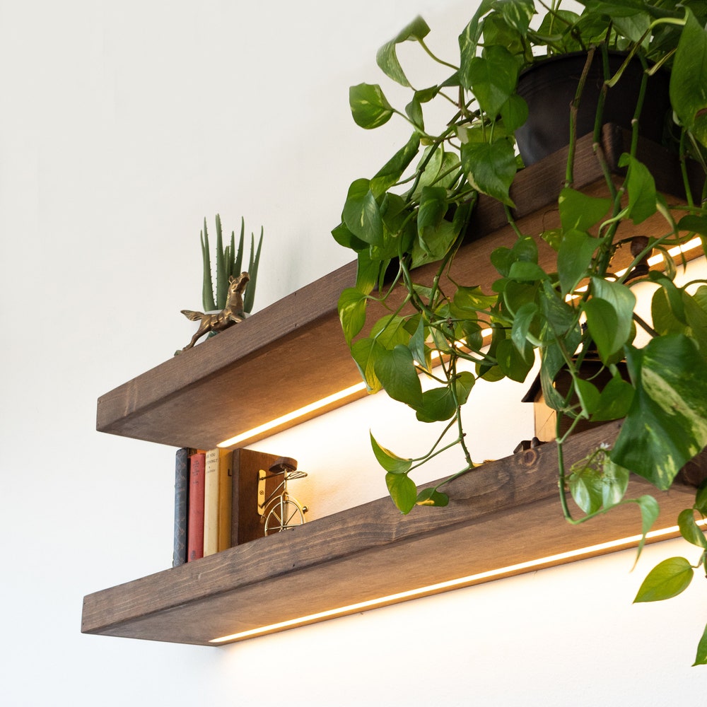 Floating LED Shelves, Hidden Bracket, 3000k, Kitchen Shelving, FREE Shipping, Recessed Light Strip, Rustic / Farmhouse, Any Size, 110-120VAC