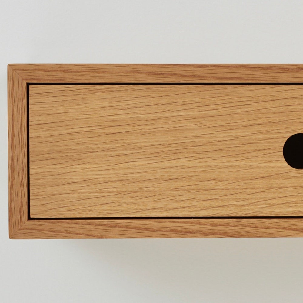 Our Floating Nightstand is handmade from solid American White Oak. A Modern Scandinavian design with a beautiful floating appearance.