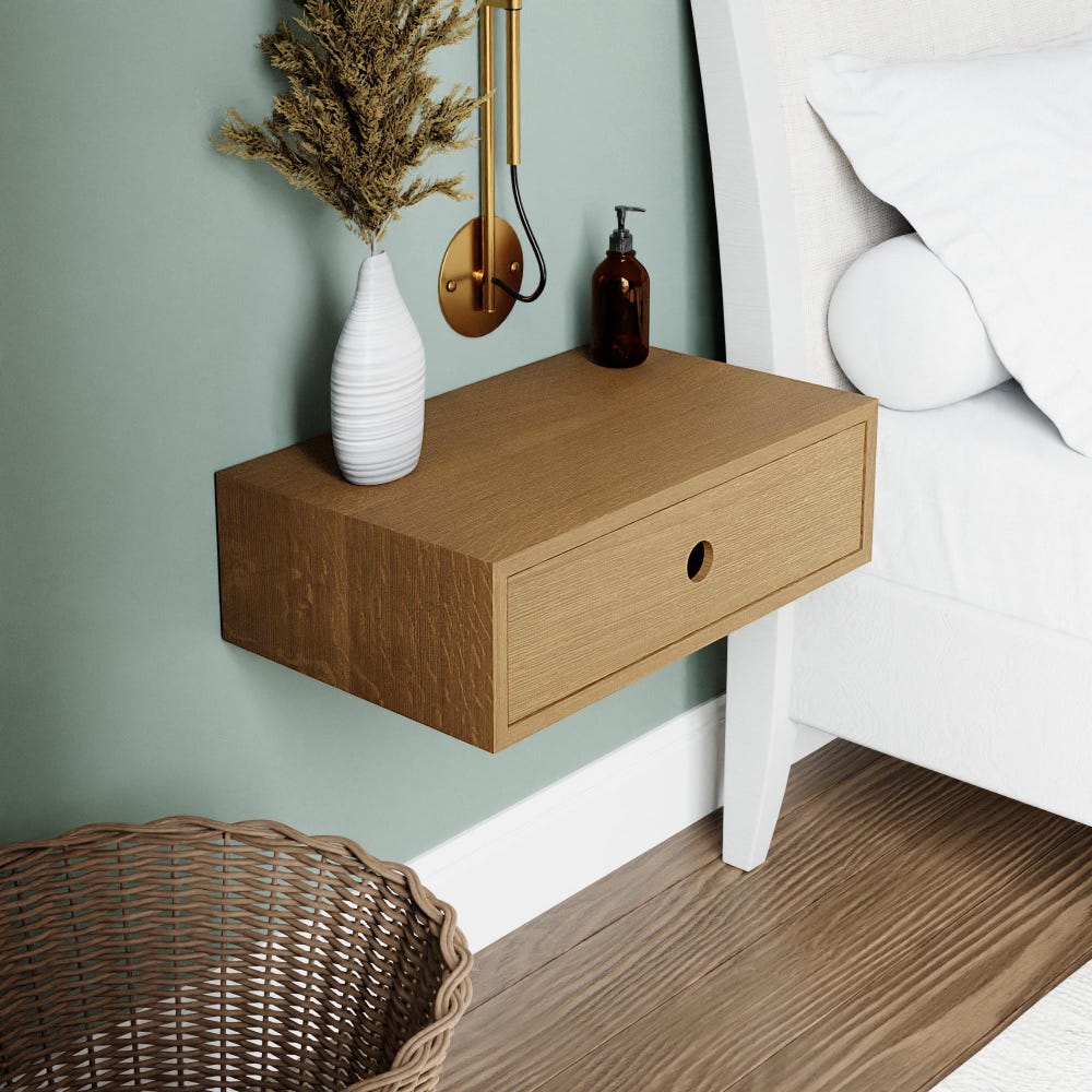 Floating Modern Nightstand with Drawer Mid Century Modern Bedside Table in Solid White Oak Scandinavian Minimalist Wood Nightstand