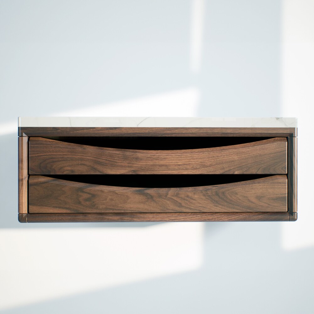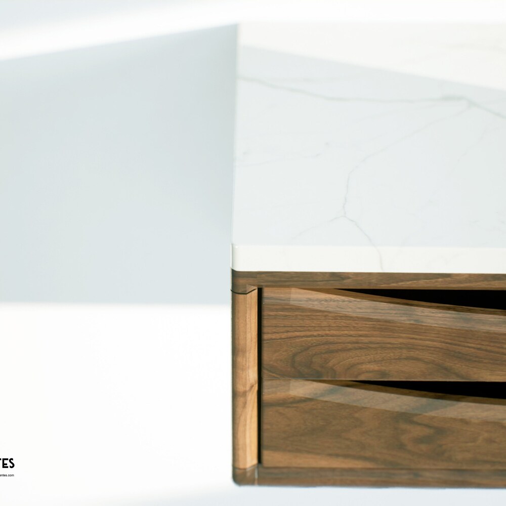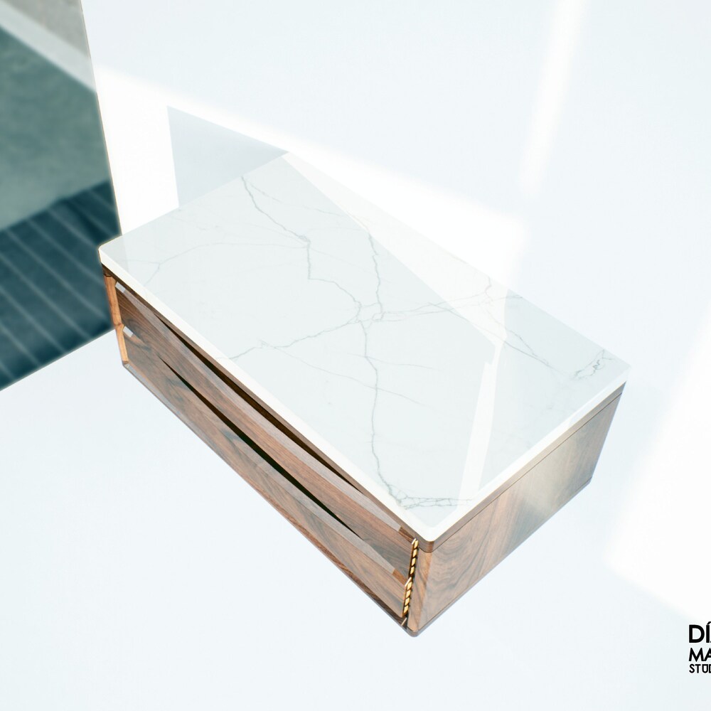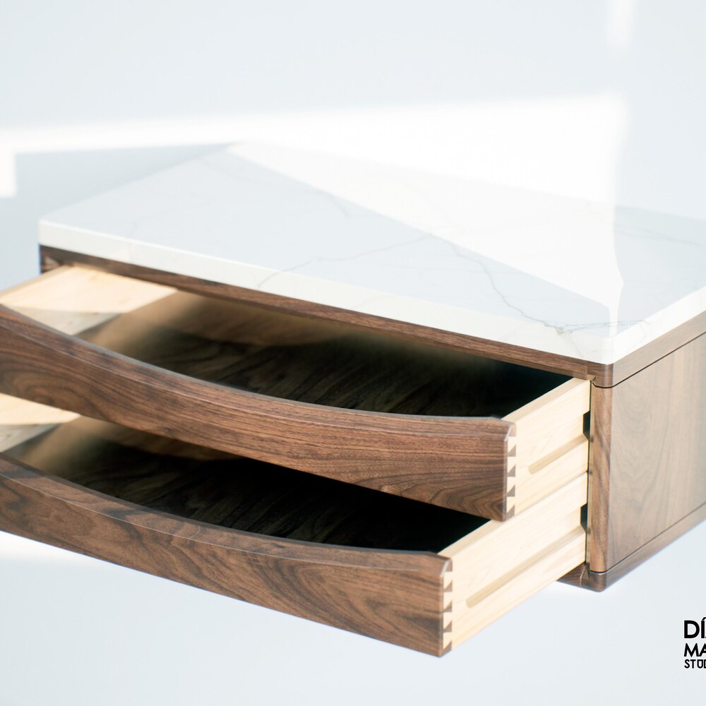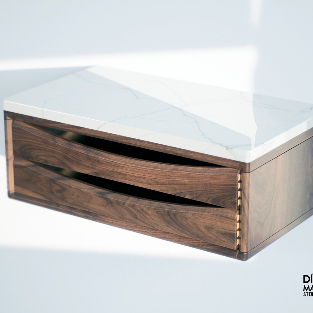 Floating Nightstand with drawer in Solid Walnut and carrara marble