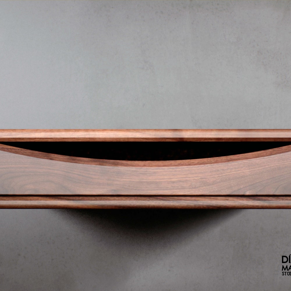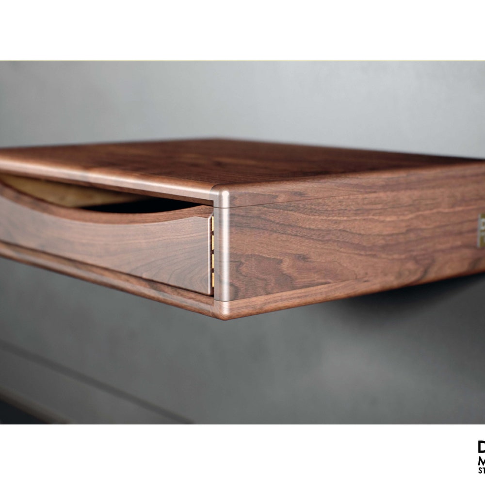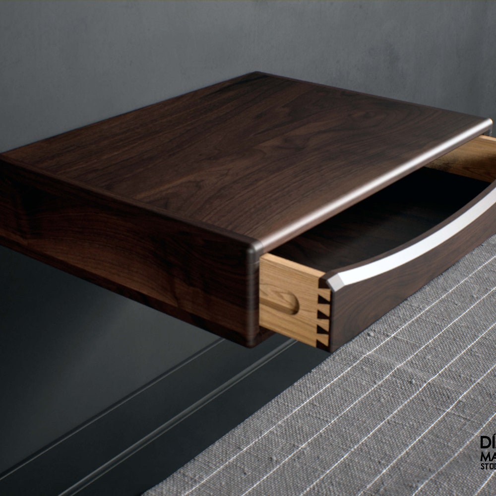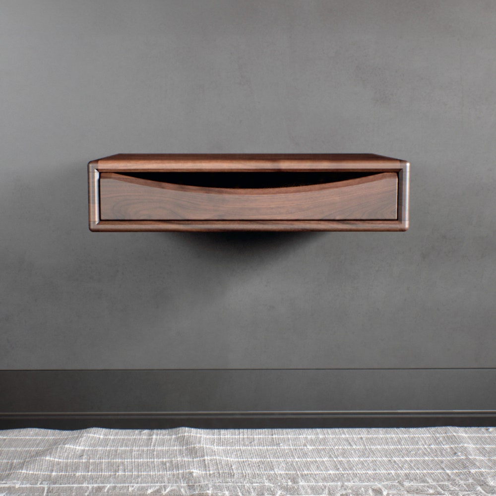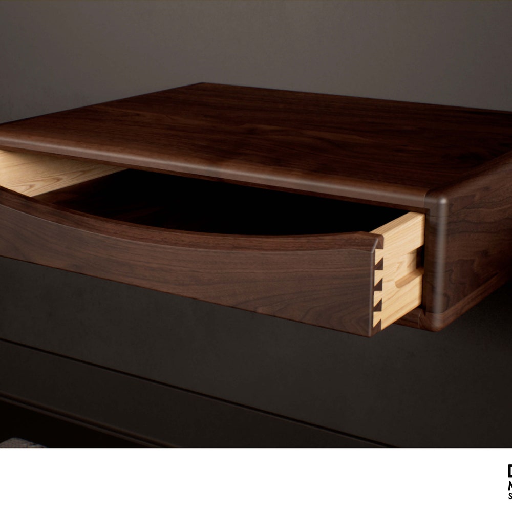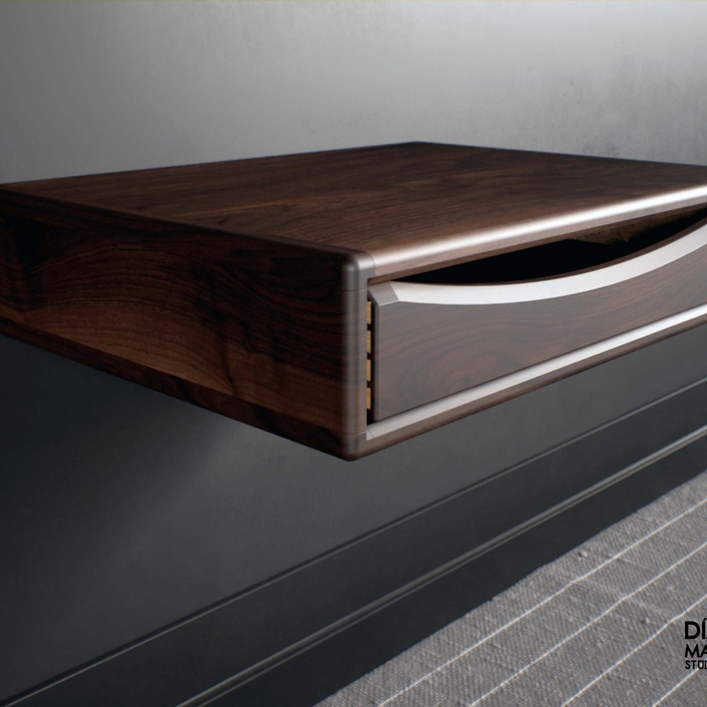 Floating nightstand with drawer in solid American Wlanut & Chestnut, Floating bedside table, Modern nightstand, Wood bedside table, Shelf
