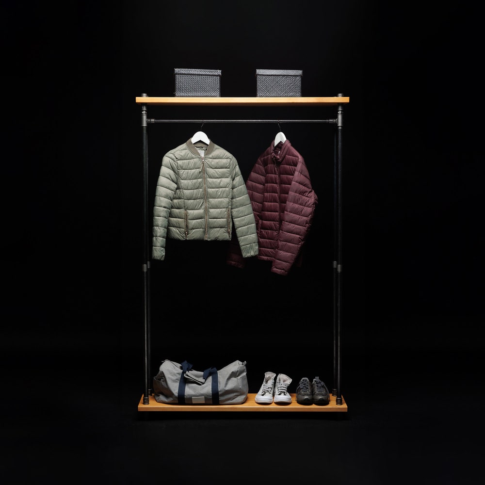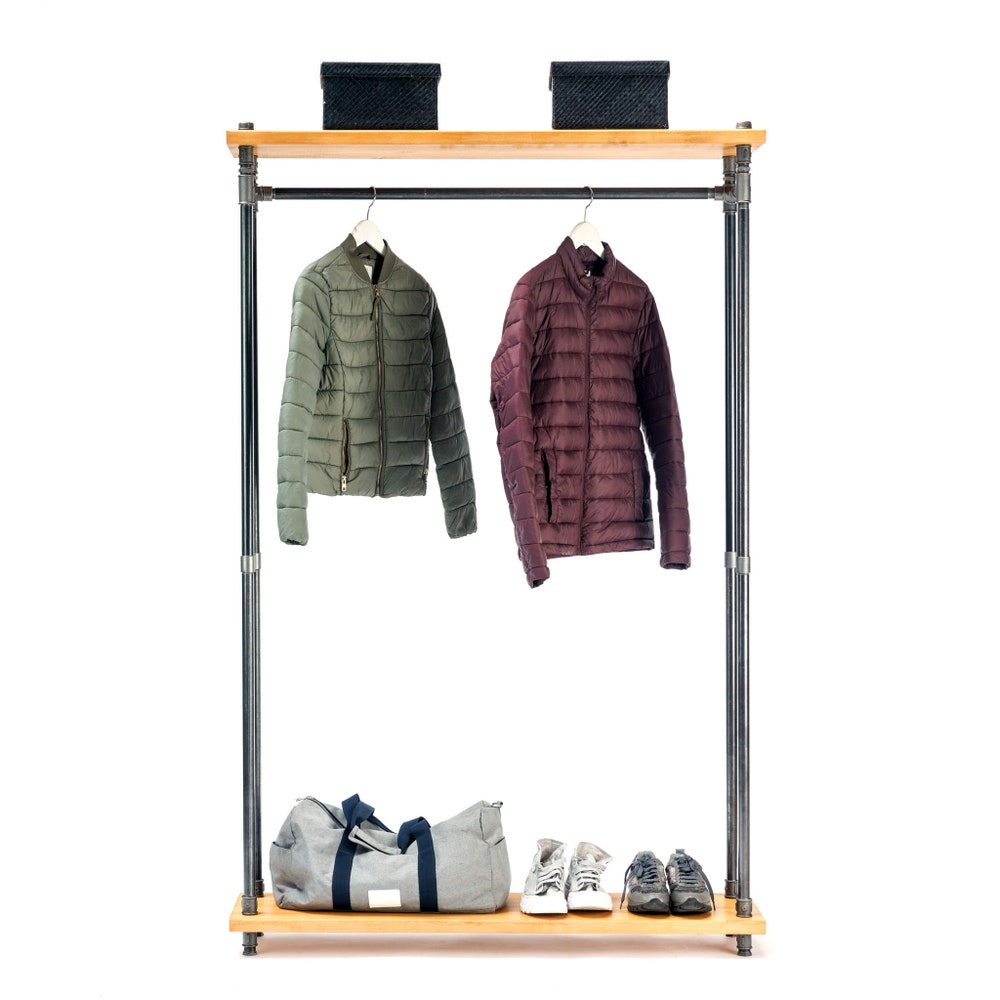 Handmade industrial clothes rack, minimalist interior coat rail, stand clothing hanger.