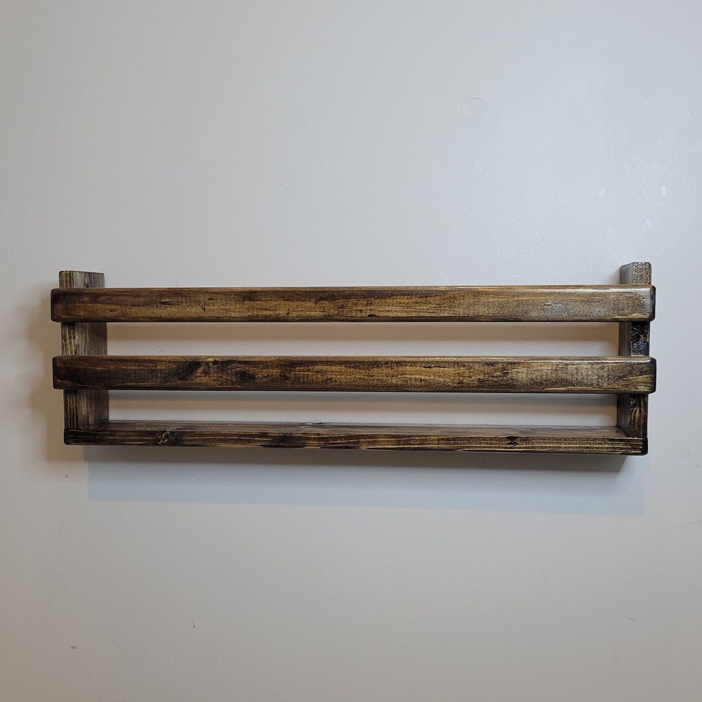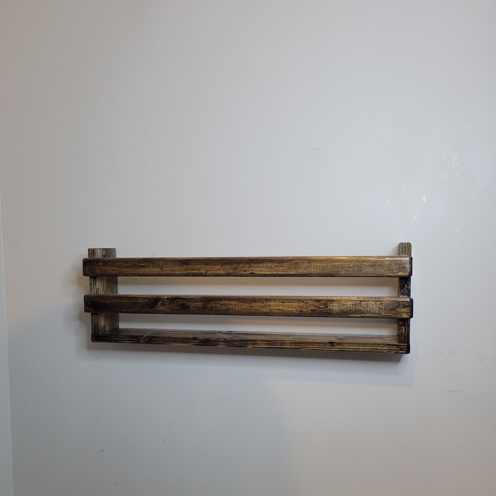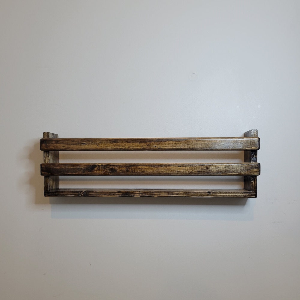 Each shelf is handmade and sanded smooth. We add two coats of polyurethane to protect and seal each one. This gives a beautiful glossy finish that will last and also seals the color.