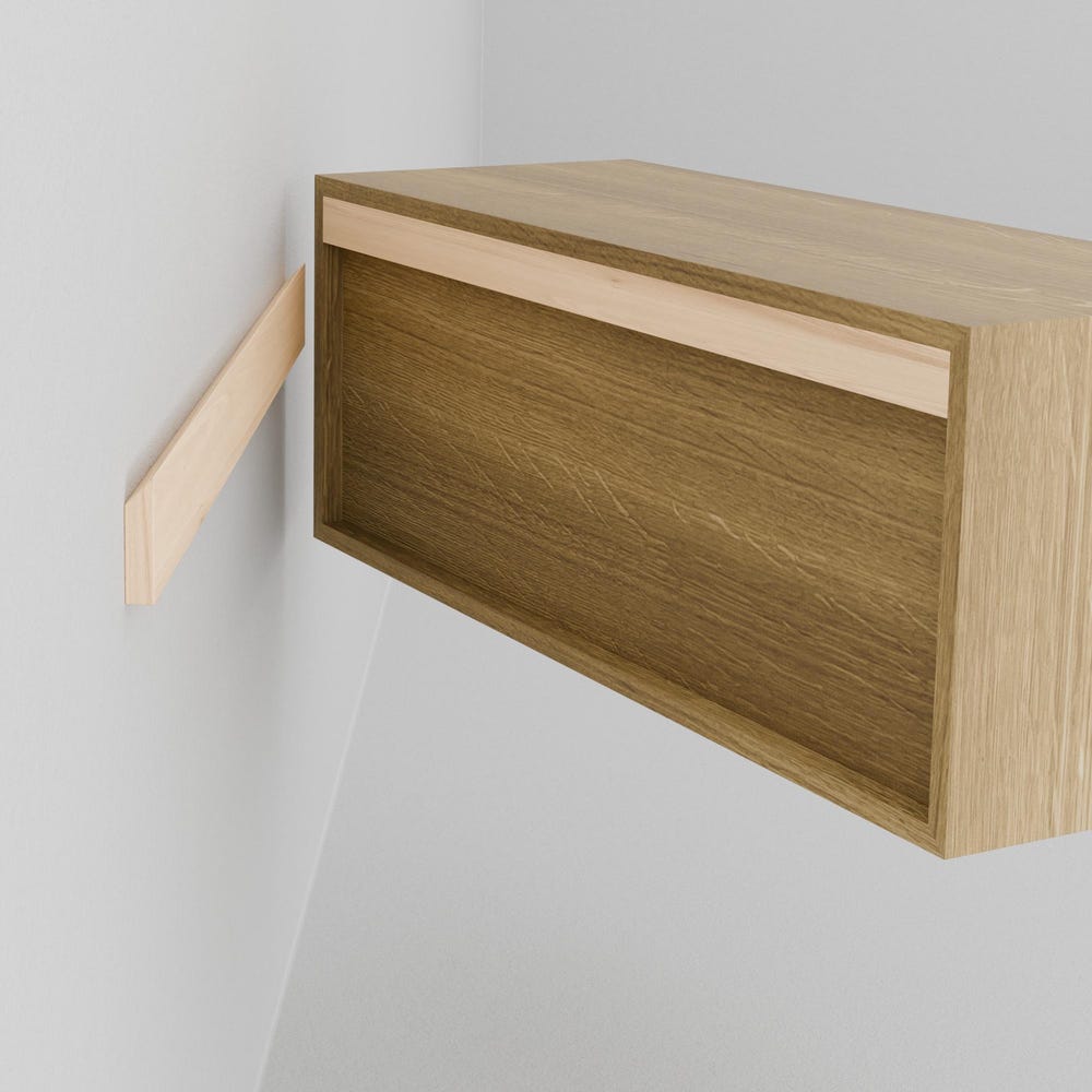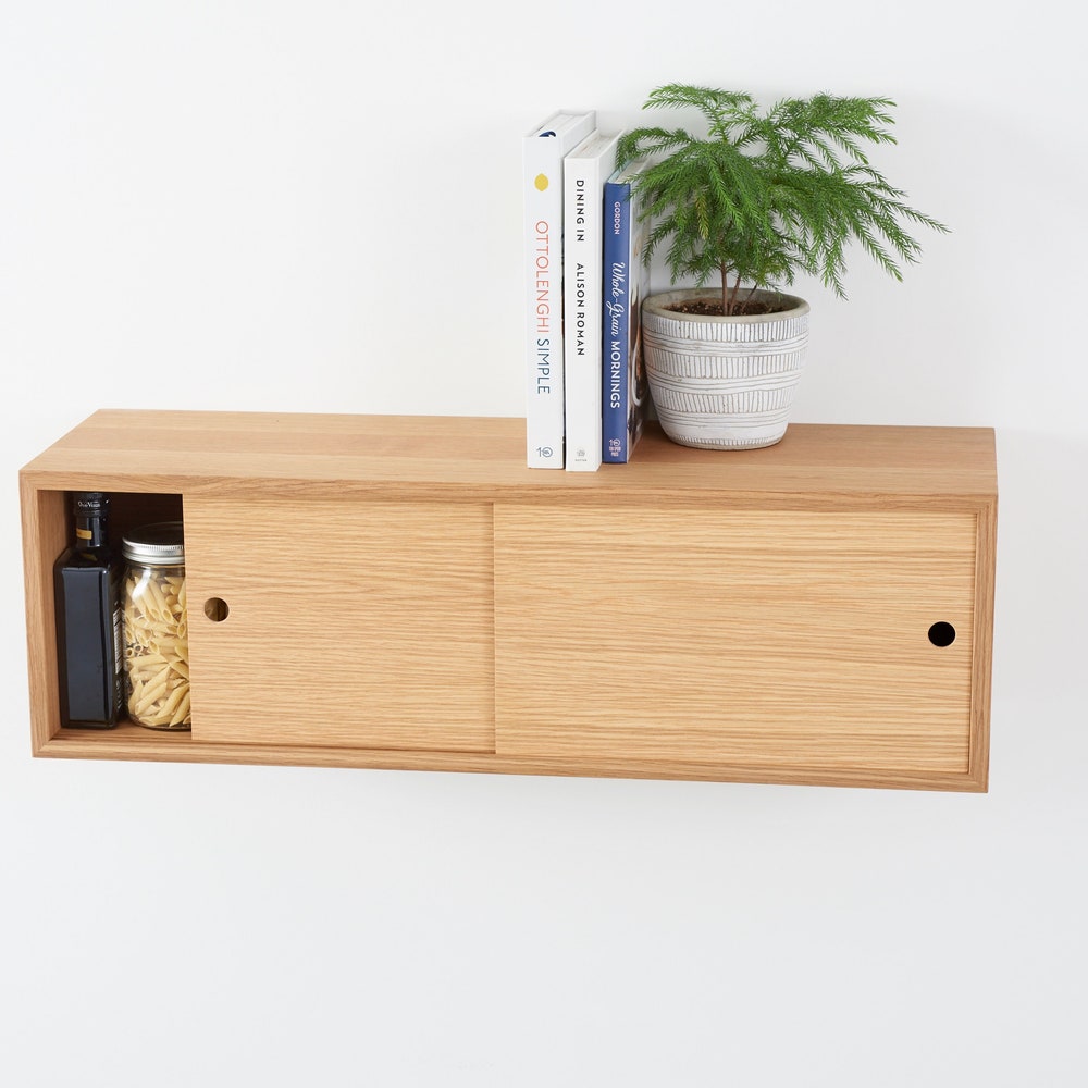 Floating Storage Cabinet with Sliding Doors Handmade in Solid White Oak