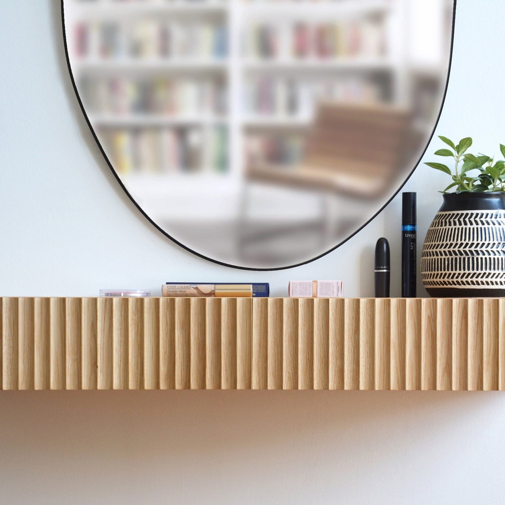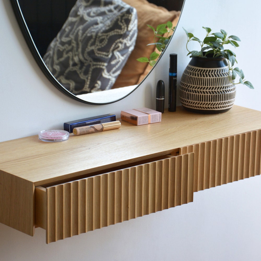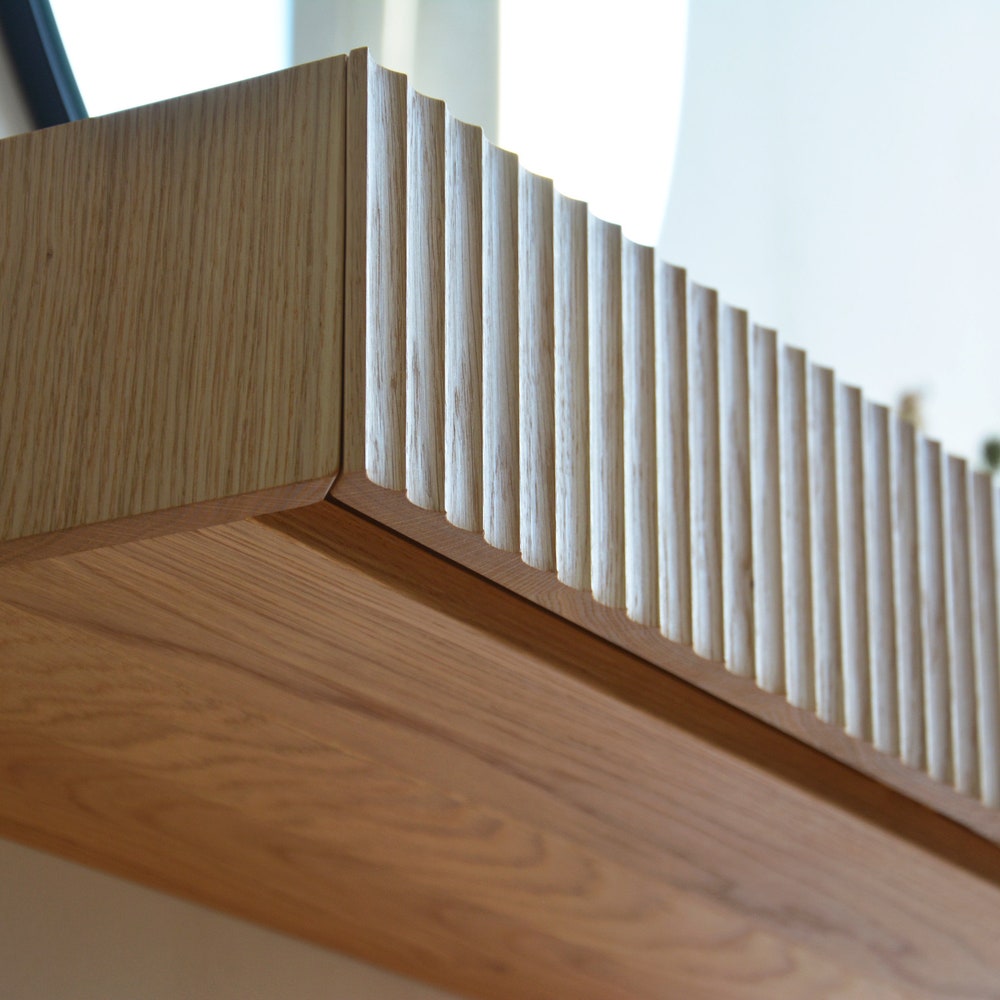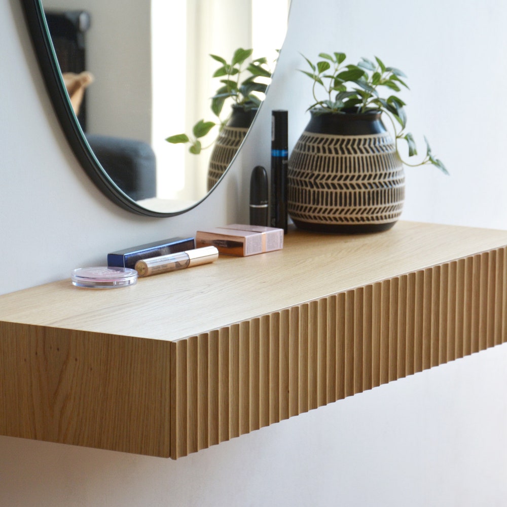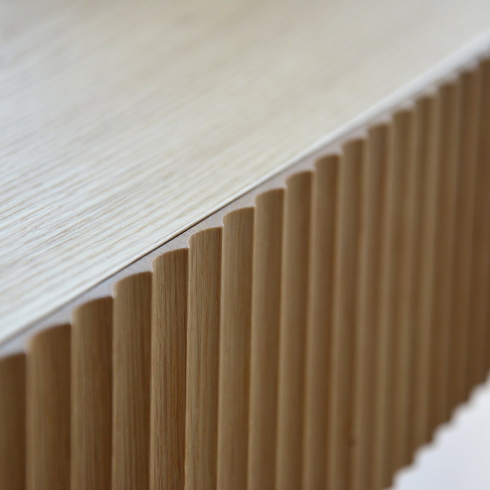 Our fluted dressing tables are made with professional joinery, using hand-selected, top-grade oak wood material. We keep an eye on the wood texture: it’s continuous through the top / sides. The drawer fronts get the fluted texture by high-precision CNC machine. Once the assembly is ready, we apply a 100% natural oil that does not just bring the beatiful wood color and texture to live, but adds a protective coat to offer long-term, carefree usage.